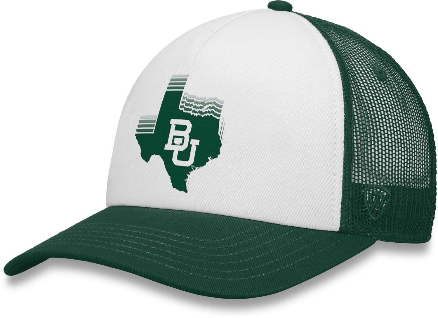 Show your Bears pride when you sport the Top of the World Men's Baylor University Roots Retro 2-Tone Snapback Cap. This cap features a polyester and cotton construction for comfort and durability. The team design highlights your fandom with a retro look, and the snapback closure lets you tighten and loosen the fit with ease.