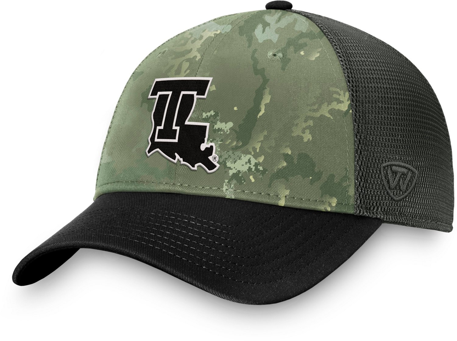 Rep the Tigers in the Top of the World Men's Louisiana State University Victory Structured Mid-Crown Mesh Back Snapback Cap. This cotton cap has a mid-crown and a mesh back for ventilation. The team design shows your team spirit.