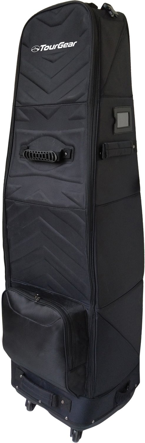 Keep your clubs covered with the Tour Gear Collapsible Travel Cover. The collapsible travel cover is made from 30% plastic, 60% polyester and 10% metal hardware for long-lasting use. The cover fits most stand or cart bags and has 2 interior mesh pockets to help store all your gear.