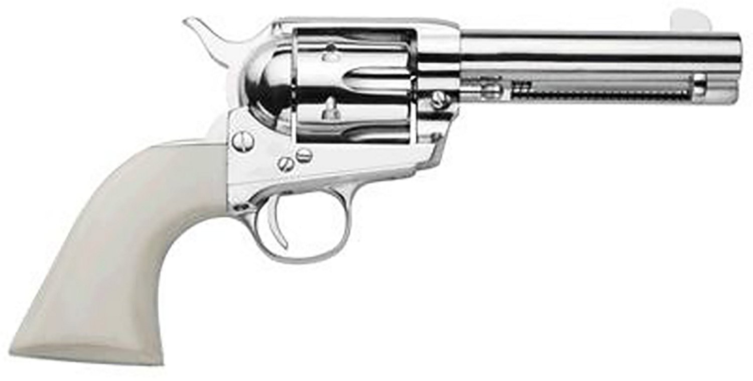 Revisit the classics with this Traditions 1873 Single Action 45 Colt White PVC Revolver. It’s crafted from a durable steel frame with a nickel finish for lasting strength, and the white PVC grip offers comfortable control.