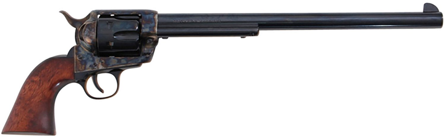 Show your love for the classics with this Traditions 1873 Single Action Buntline 45 Colt Walnut Revolver. It’s crafted with a durable steel frame and a Color-Case Hardened finish for long-lasting use, and the walnut grip is comfortable to hold during extended use.