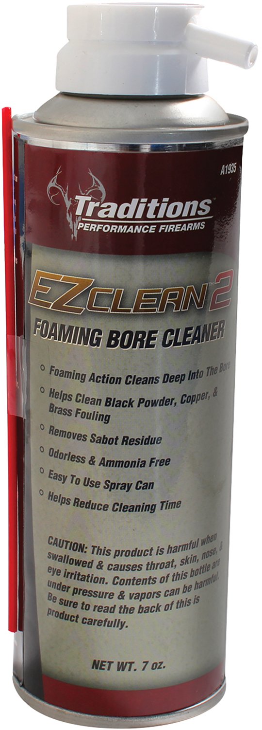 Clean black powder, copper and brass fouling with the Traditions EZ Clean2 7 oz Foaming Bore Cleaner. Foaming action ensures deep cleaning, while the spray can enables precision application.