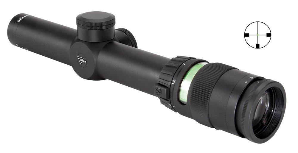 Bring your target into focus with the Trijicon AccuPoint 1 - 4 x 24 Riflescope. With multicoated optics for excellent light transmission and a quick-focus eyepiece, this riflescope provides sharp images. Aircraft-quality, hard-anodized aluminum construction ensures lasting use, and the nitrogen-filled tube helps prevent corrosion and fogging. The waterproof and shock-proof design enables use in harsh environments, while Manual Brightness Adjustment Override lets you control fiber-optic light output during daylight use. Matte finish. Long 3.2" eye relief.