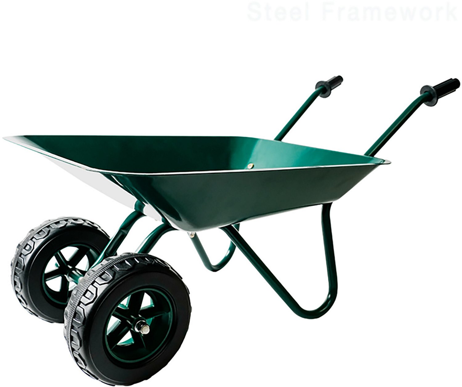 Help out around the house with the Trimate Metal Wheelbarrow. The steel frame affords durability, while the molded wheels deliver a smooth ride. The no-scratch steel tray help prevent accidental markings, and the soft grip handles provide comfort.