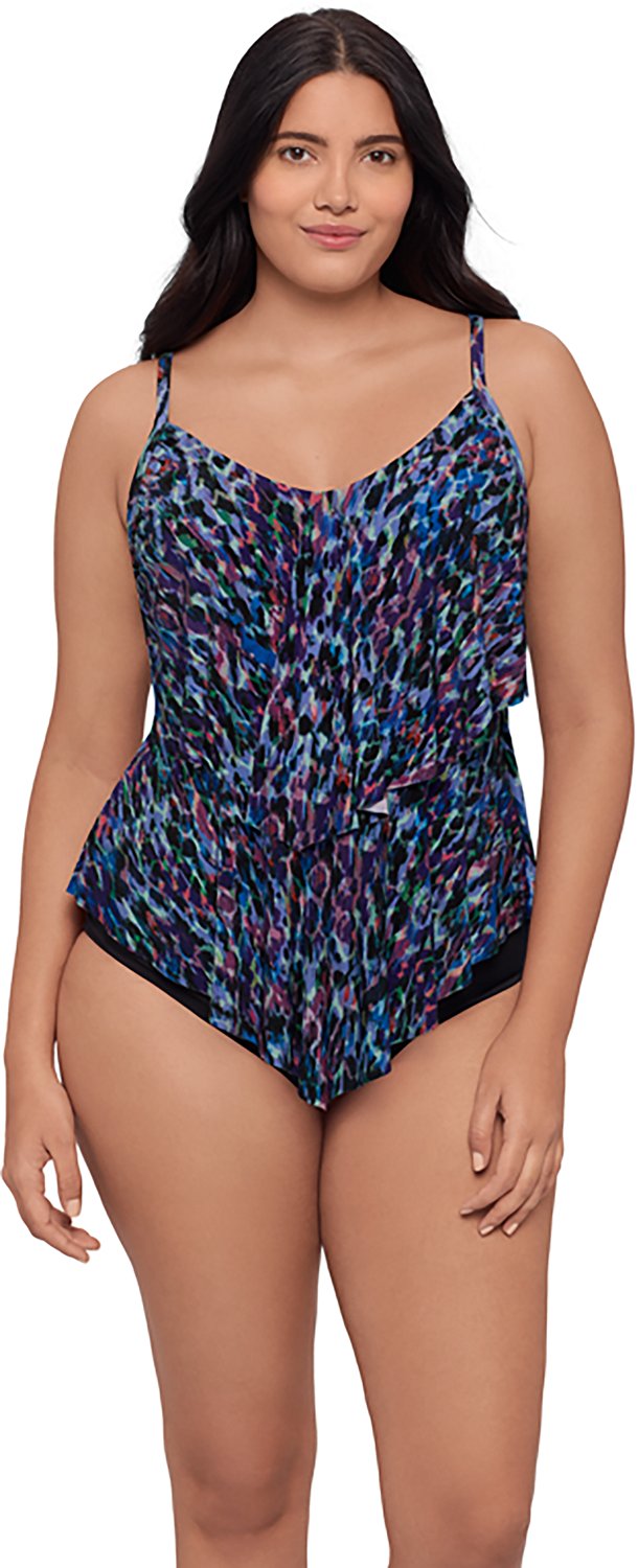 Your day's swim is sure to stay comfortable when you wear this Trimshaper Women's Mystic Skin Ronnie Tankini in the water. Its 95% polyester, 5% Spandex fabric offers a pleasant feel all outing long.