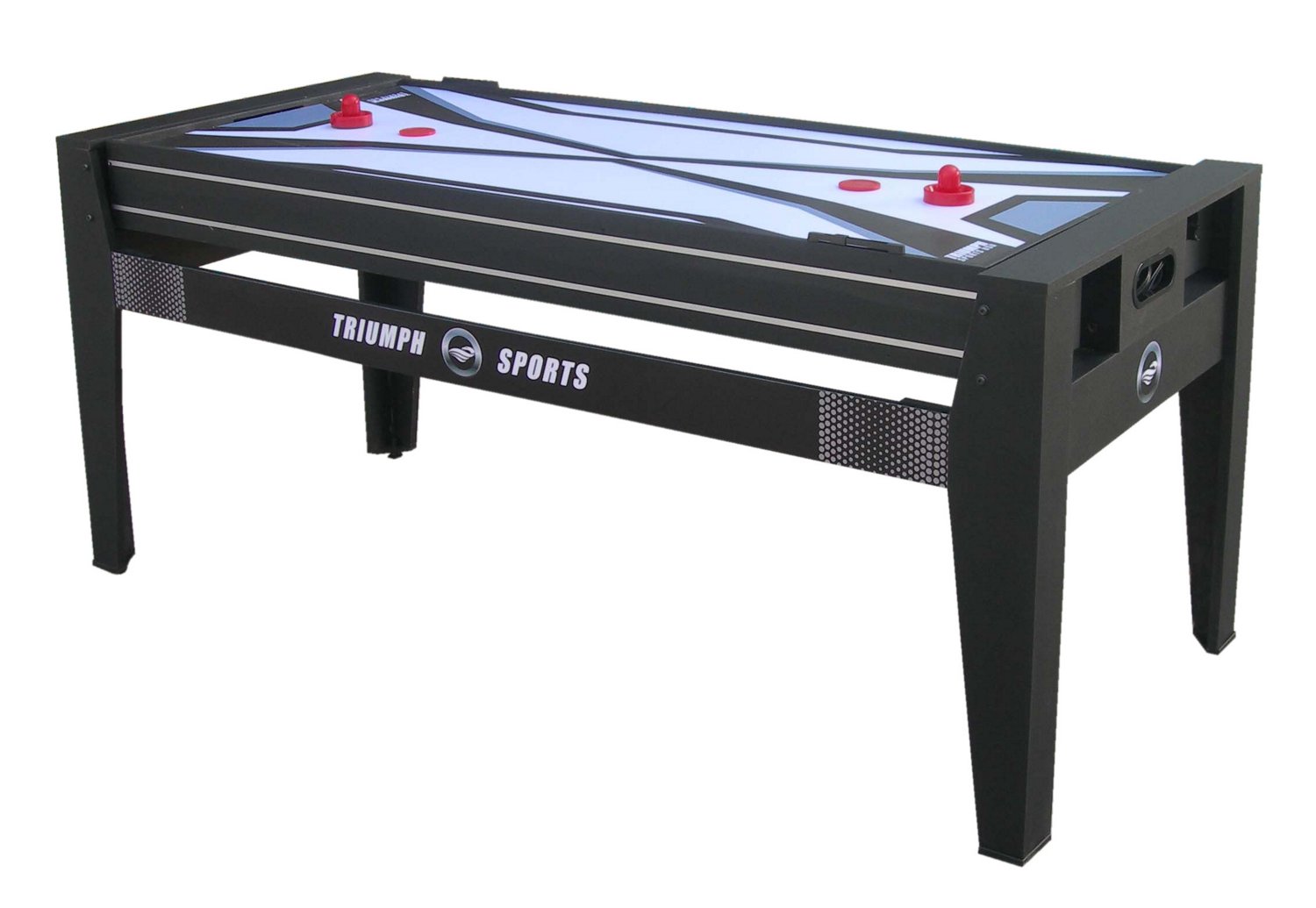 Duel it out with friends with the Triumph Sports USA 72" 4-in-1 Combo Table, which features a rotating design that makes switching from game to game a breeze. The table offers 4 game options, including powered air hockey, billiards, table tennis and football, and includes everything you need to get the competition rolling. Find a wide assortment of game tables at Academy.com.