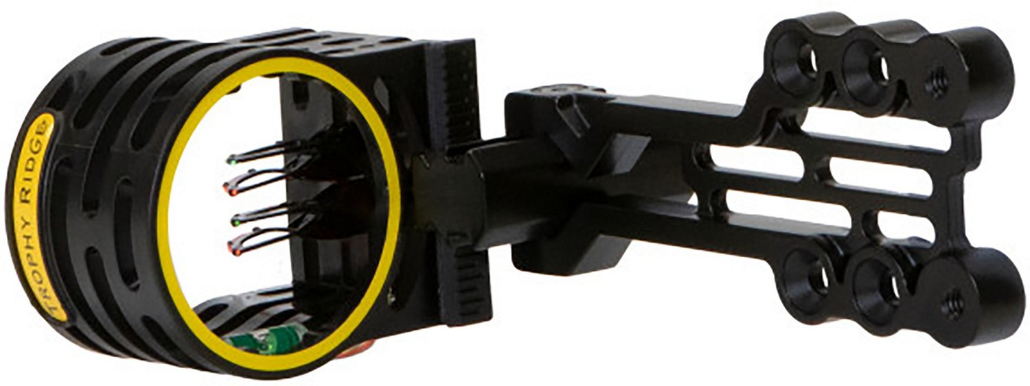 Maximize your hunting success with a Trophy Ridge Fatal 4 Sight. High-visibility optic fiber pins and a hood accent assist with speedy target acquisition, while the integrated bubble level ensures a properly aligned shot. Multiple mounting holes and a reversible design allow versatile configuration for both left and right handed bows.