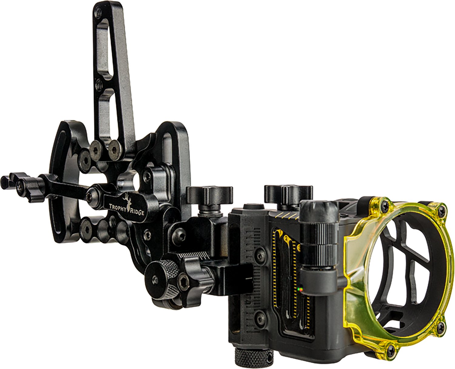 Elevate your accuracy with the Trophy Ridge Trilogy 0.19 3-Pin Sight. This bow sight has three micro-adjusted fiber optic pins and a Rheostat light to improve your visibility and accuracy at all ranges. The extended slider allows you to increase your shooting range, while the Delrin bushing helps you shoot quietly.