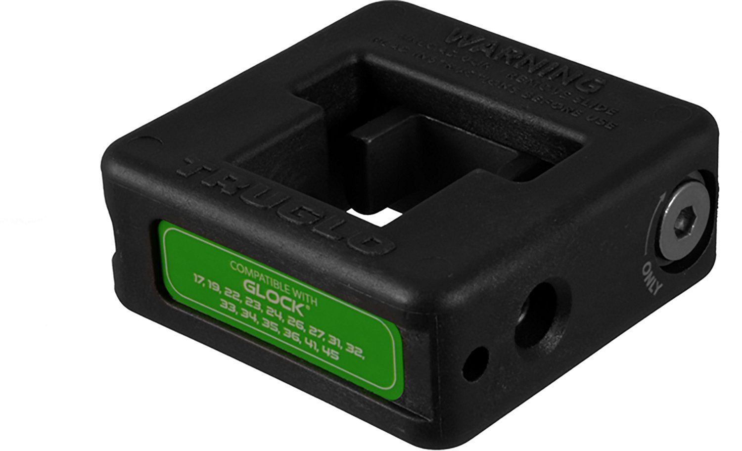 Accessorize your firearm with the Truglo Glock 17/19 Rear Sight Adjustment Tool. It allows you to easily make left and right adjustments to your rear sight. The magnetic holder retains the wrench, and its composite construction will not scratch the slide. The tool is compatible with Glock models: 17, 19, 22, 23, 24, 26, 27, 31, 32, 33, 34, 35, 36, 41, and 45.