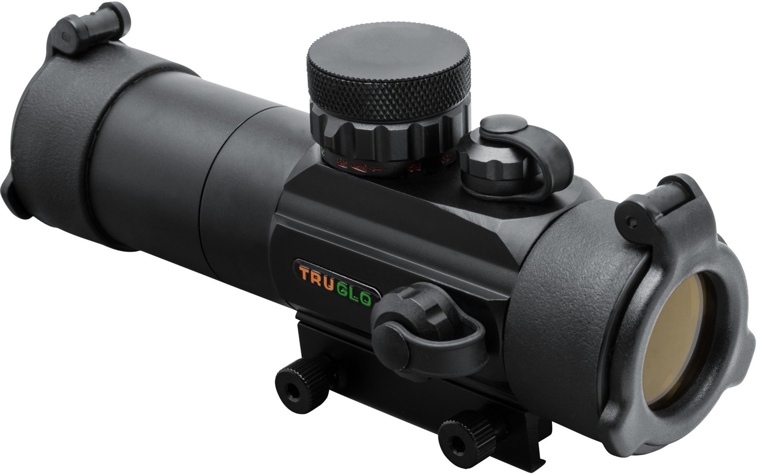 With a dual-color reticle that's made especially for turkey hunts, the Truglo Gobble-Stopper 1 x 30 2-CLR/SS Scope helps ensure that each of your expeditions are a success. The detachable, extended sun shade helps minimize glare from the front lens, and the flip-up lens caps shield against dust, scratches and other minor damage. An integrated Weaver-style mounting system allows use on a wide range of firearms.