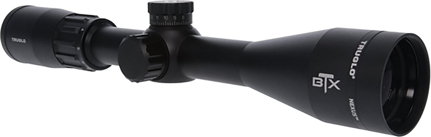 Get ready for a successful hunting trip when you bring along the Truglo Nexus 3 - 9 x 40 BTX Duplex Reticle Riflescope. This riflescope is designed with nitrogen gas-filled construction and multicoating to help you see clearly in inclement weather, and the 1/4-MOA click turrets make it easy to control the windage and elevation. The scratch-resistant finish is nonreflective to help during sunny days.