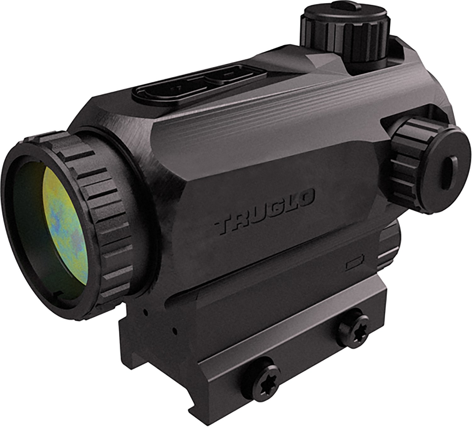 Pin down your target with help from the Truglo PR1 1 x 25mm 6-MOA Illuminated Reticle Prism Dot Sight, which works at both short and medium ranges and offers an extremely wide field of view. The sight offers an adjustable diopter eyepiece and uses an etched reticle that helps provide a clear view with or without illumination. The unit offers digital brightness controls that let you make quick and easy adjustments with the push of a button.