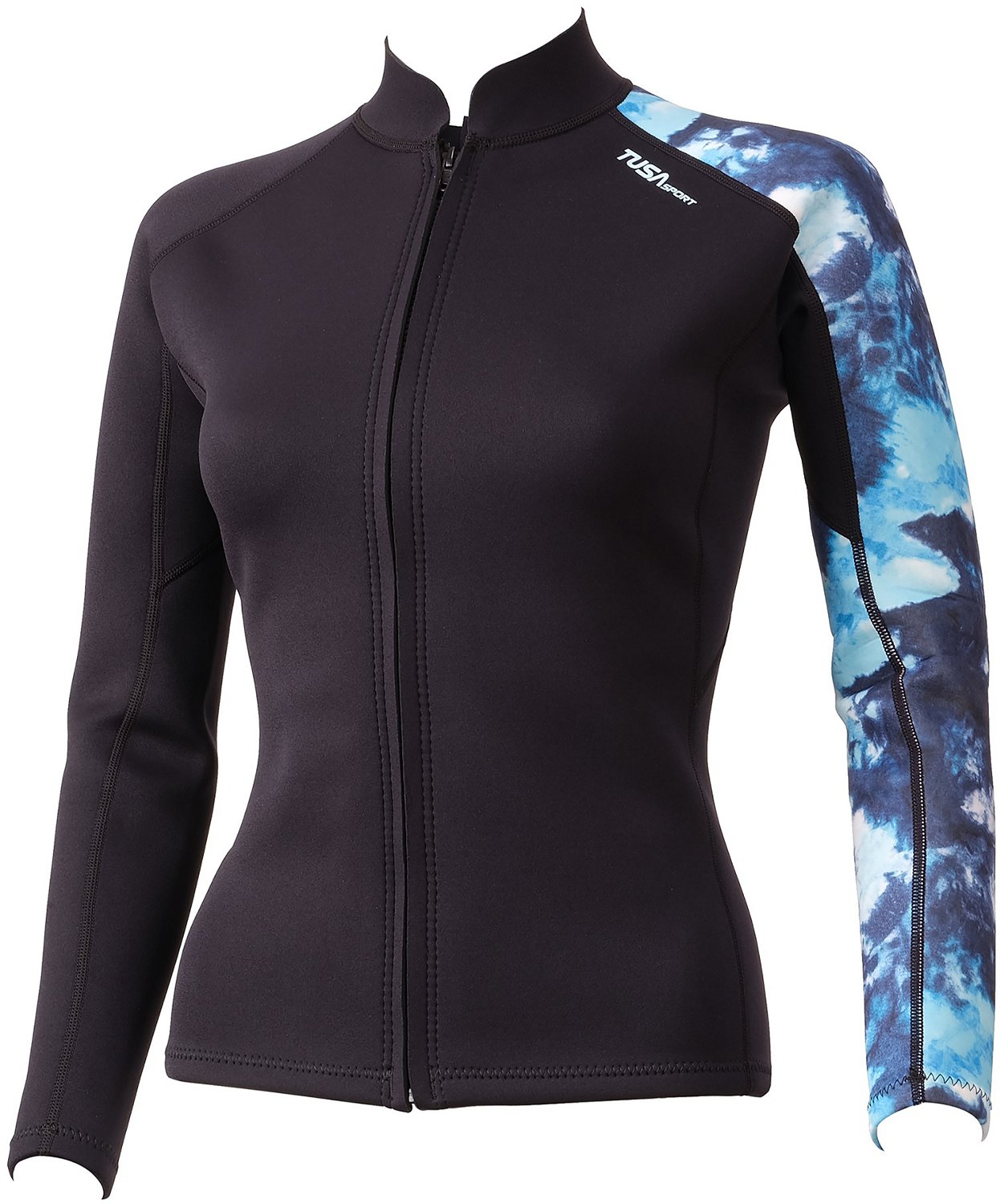 Take a dive in the Tusa 2 mm Neoprene Wetsuit Top. The YKK front zipper with neoprene protector ensures comfort, while the 1.5 millimeter thick chloroprene rubber wrists and neck allow for easy attachment and detachment. UPF 50+ sun protection shields against harmful UV rays.