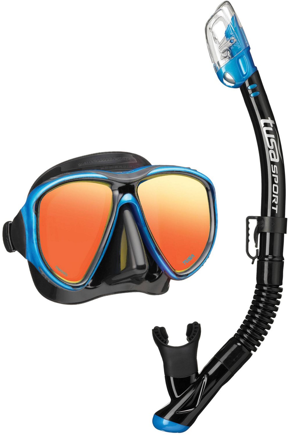 Get ready for your next ocean adventure with the TUSA Adults' Powerview Dry Mirror Combo. This combo includes 1 UM-24 mask and 1 USP-250 snorkel constructed from pure silicone and polycarbonate material for durability, while the 2-window design with ClearVu tempered glass lenses provides a wide field of view for increased visibility. Hyperdry Elite Dry Top technology helps keep water out of the snorkel, and the high-flow purge valve and drain chamber allow for quick clearing.