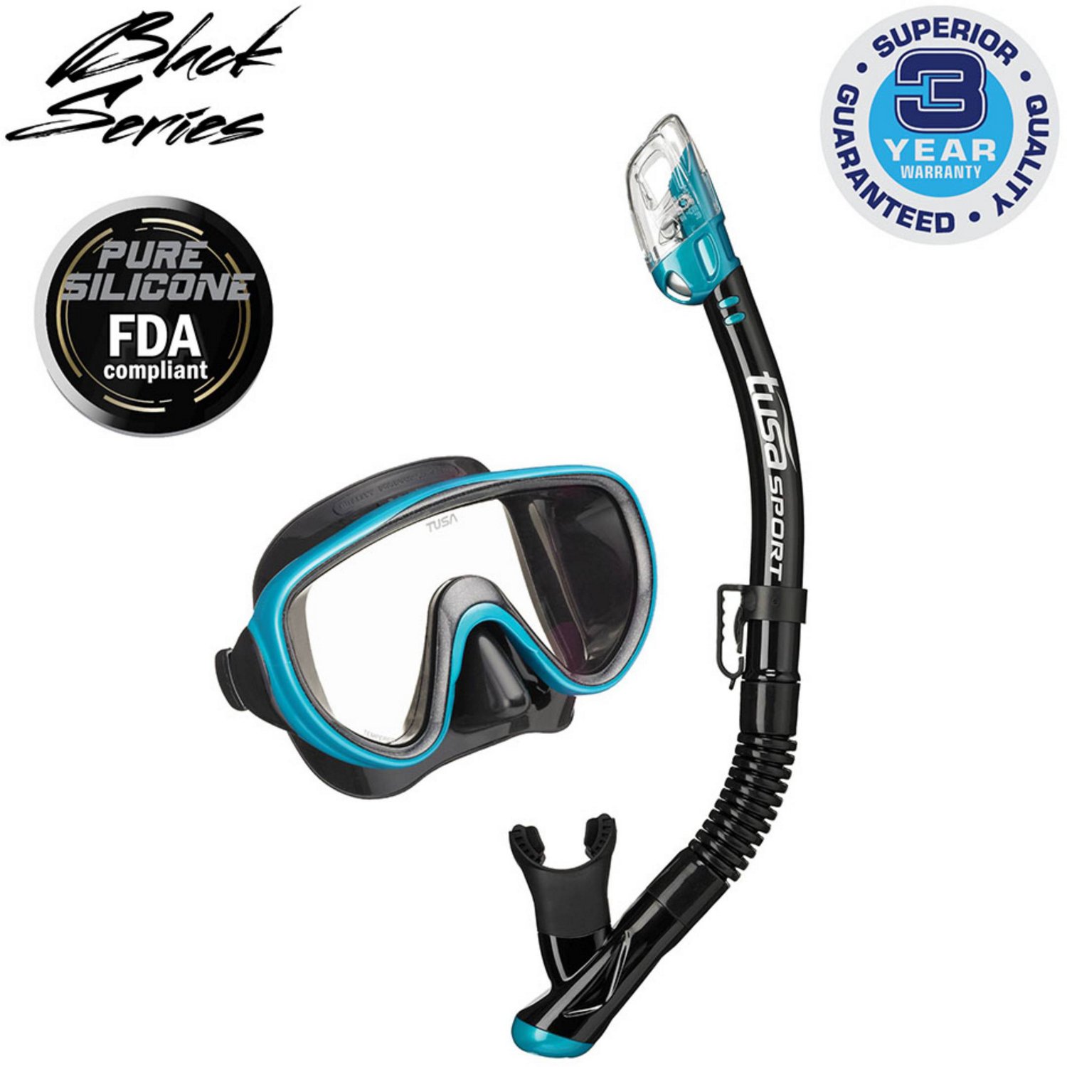 Check out underwater environments with the TUSA Adults' Serene Mask and Snorkel Dry Combo. The round edge skirt conforms to the contours of your face, and the ClearVu tempered glass lenses deliver a wide view with a simple design. A Hyperdry Elite Dry Top presents dry performance, and the 3-D strap with a 5-position angle adjustor allows you to adjust the mask quickly and easily.