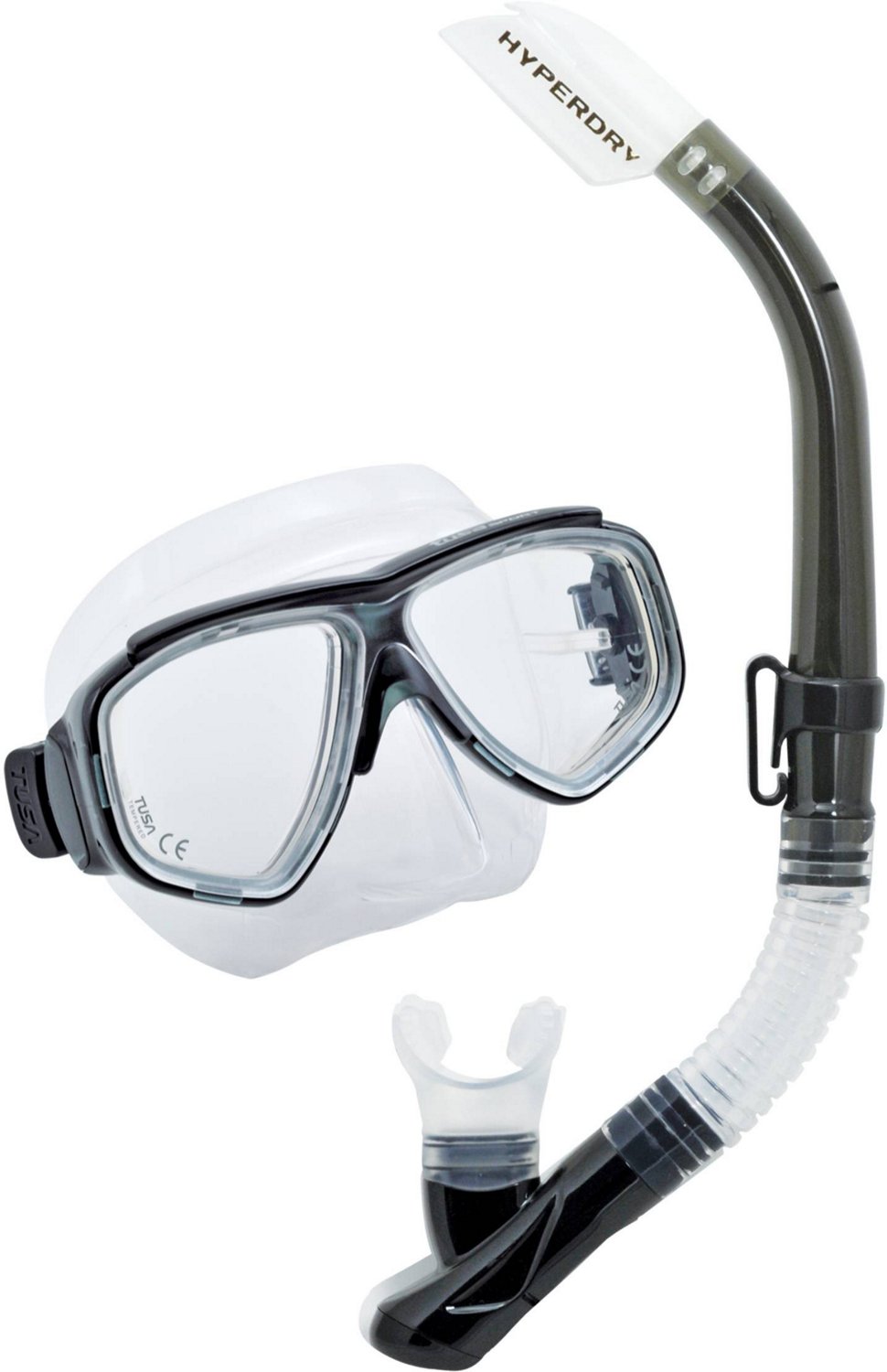 Start your underwater adventure with the TUSA Splendive Combo. This combo includes a UM-7500 mask and a USP-190 snorkel constructed from pure silicone and polycarbonate materials for durability. The 2-window design with ClearVu tempered-glass lenses provides a wide field of view for increased visibility. Hyperdry technology helps keep water out of the snorkel, and the high-flow purge valve and drain chamber allow quick clearing.