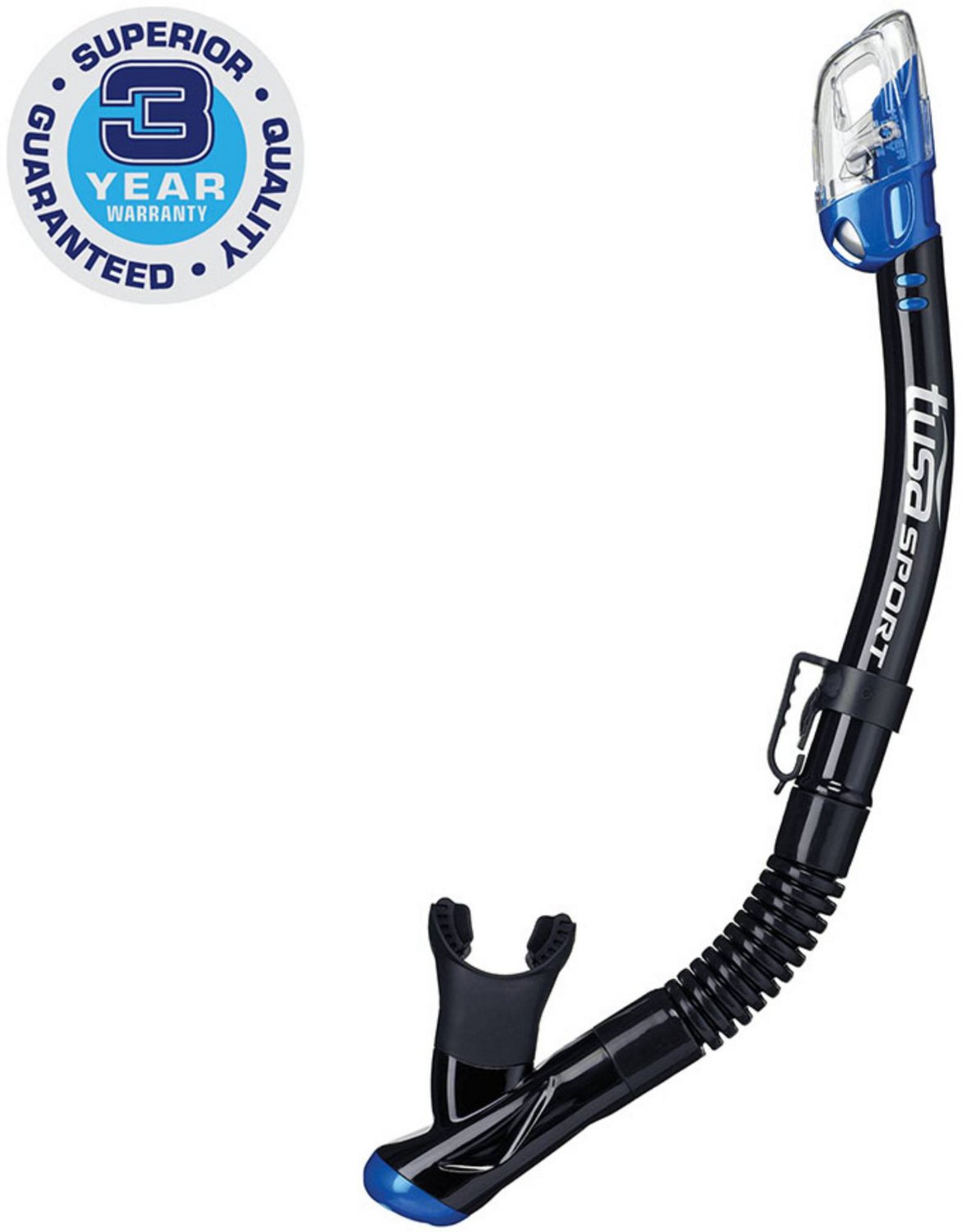 Stay underwater longer with the TUSA Sport USP250QB Dry Top Snorkel. This snorkel uses Hyperdry Elite Dry Top technology to keep water out of the airway and has a high-flow purge valve and drain chamber for quick clearing. The ortho-consciously designed, pure silicone mouthpiece provides comfortable wear.