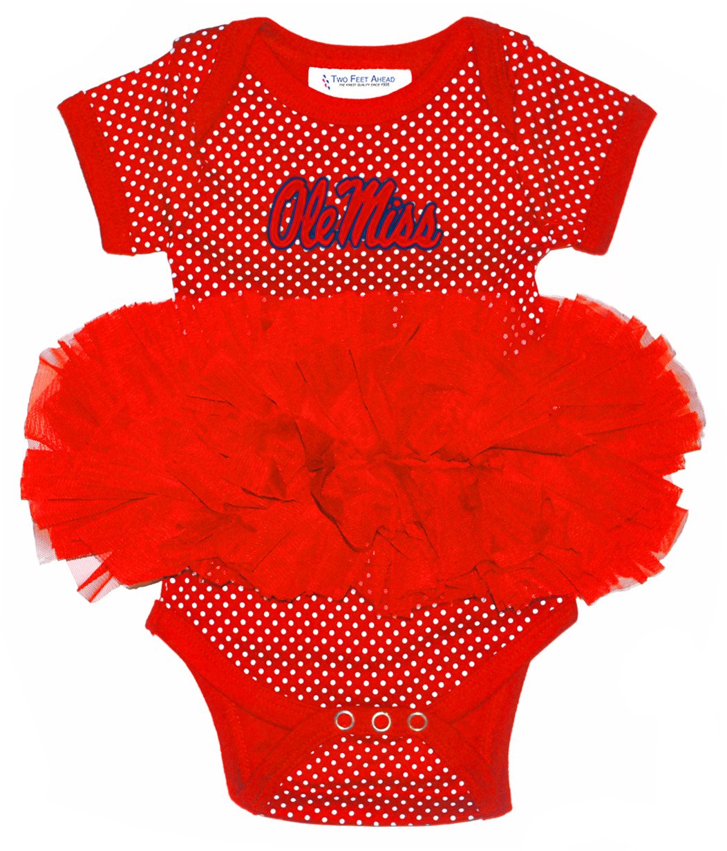 Dress your little one for game time in the Two Feet Ahead Infant Girls' University of Mississippi Tutu Creeper. The pin-dot pattern and tutu detailing create a sweetly festive look for your little Rebels fan. Get more Ole Miss gear at Academy.com.