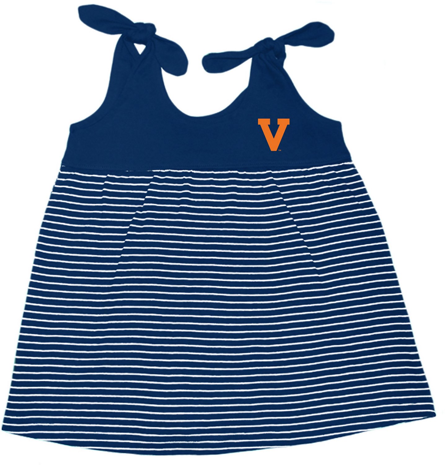 Embrace the feel of being a Cavaliers fan with the Two Feet Ahead Toddler Girls' University of Virginia Stripe Sundress. The cotton material provides a comfortable feel, while the shoulder ties offer a custom fit. The team logo displays her team spirit.