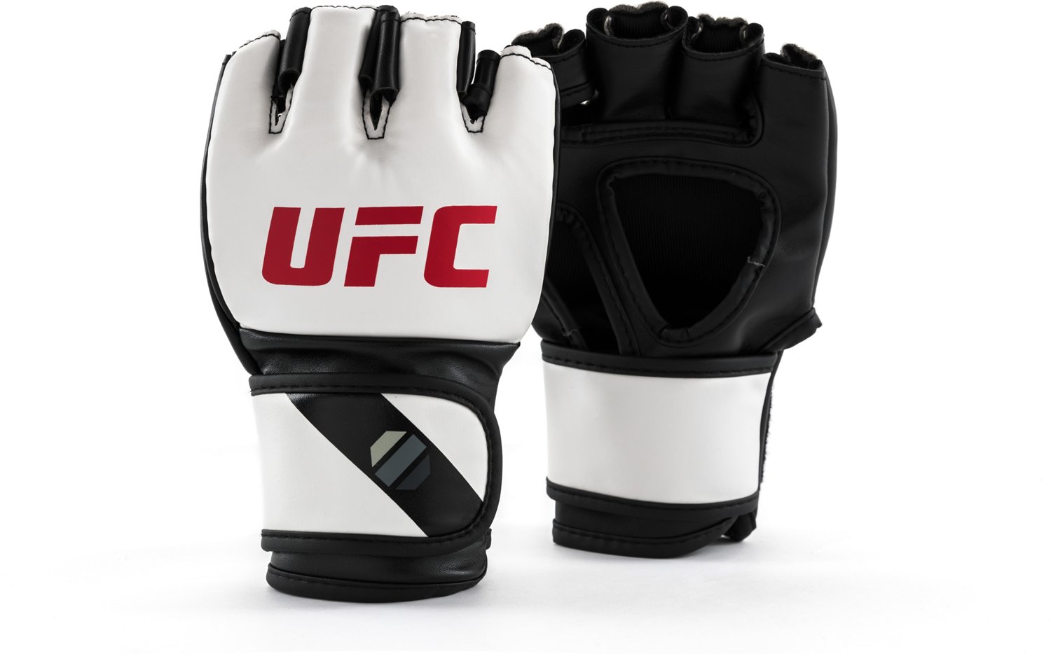 Practice your boxing with the UFC 5 oz. MMA Gloves. The synthetic leather exterior construction offers long-lasting dependability, and the UFC logo displays your brand pride. The hook-and-loop closure delivers a snug fit, and the 1-inch impact-dispersing foam ensures knuckle protection.
