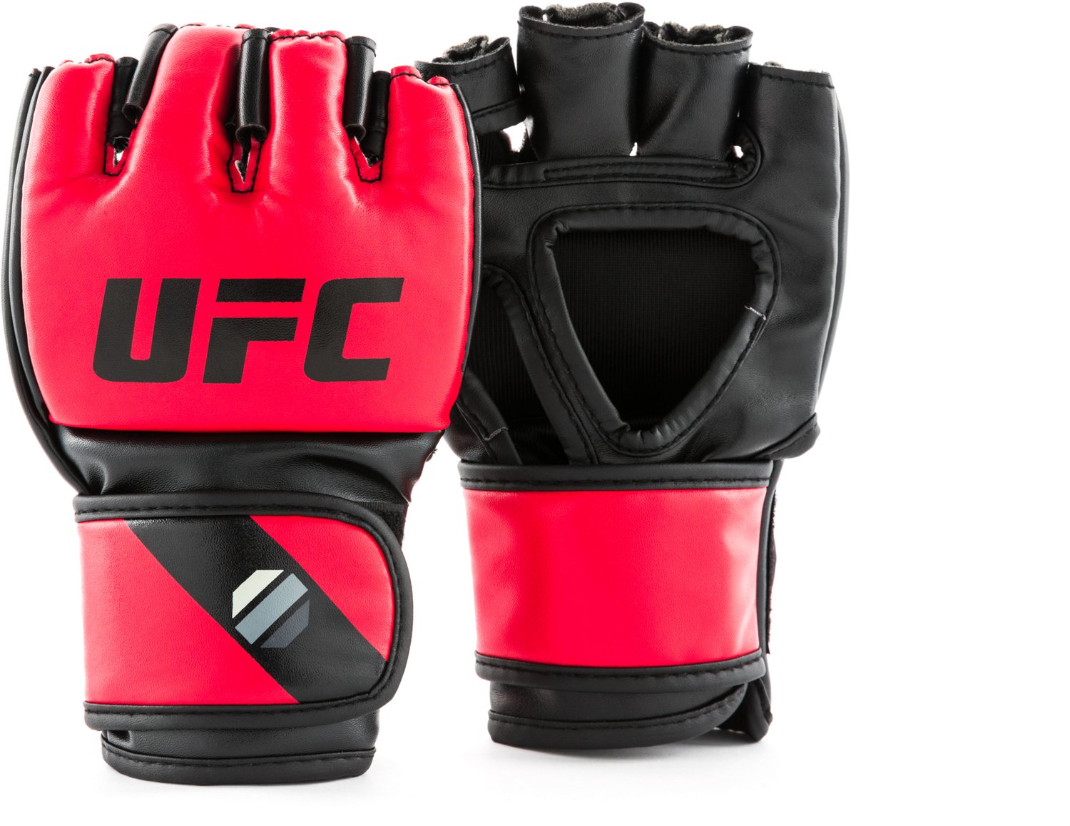 Practice your boxing with the UFC 5 oz. MMA Gloves. The synthetic leather exterior construction offers long-lasting dependability, and the UFC logo displays your brand pride. The hook-and-loop closure delivers a snug fit, and the 1-inch impact-dispersing foam ensures knuckle protection.