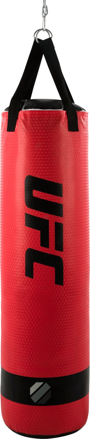Practice your boxing skills with the UFC MMA 80 lb. Heavy Bag. The PVC construction with reinforced seams offer long-lasting dependability, and the UFC logo displays your brand pride. The nylon straps enforce quiet training, and the UFC i-beam hanger delivers a sturdy and convenient setup.