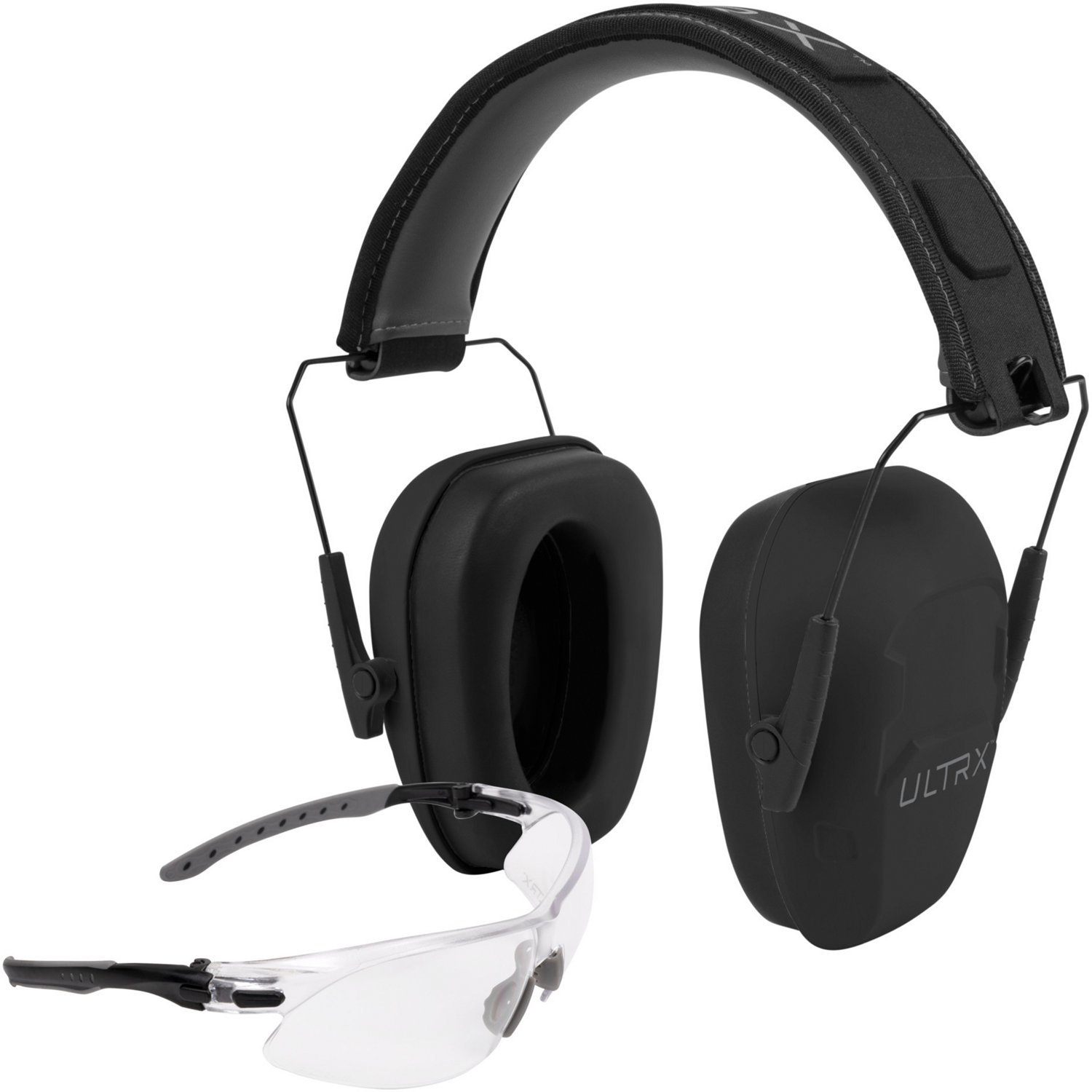 Stay safe performing tasks with the ULTRX Shield Ear and Eye Protection Combo. The high-impact polycarbonate lenses include an anti-scratch coating for long-lasting dependability, and the anti-fog coating provides a clear view. The foldable design delivers convenient portability and storage, and the ear muffs feature a 23-decibel Noise Reduction Rating (NRR).