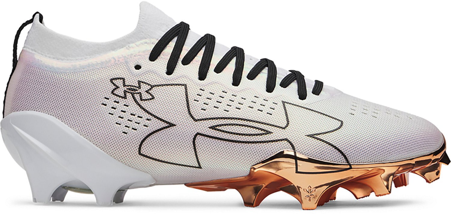 Dominate the field with the Under Amour Men's Blur Pro Football Cleats. The textile uppers promote breathability, while the ultra-thin TPU skins provides lightweight protection and durability. The UA HOVR midsoles offer increased energy return and comfort, and the biomechanical plates deliver improved speed and agility.