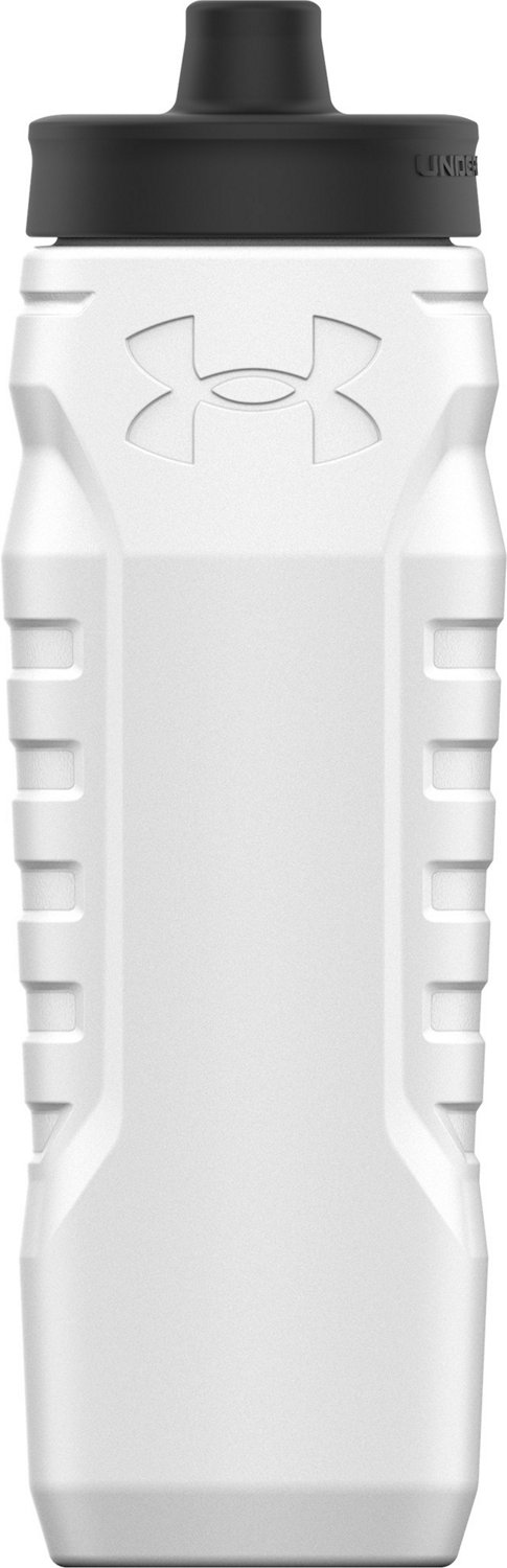 Stay hydrated with the Under Armour 32 oz Sideline Squeeze Water Bottle. The 1-handed operation offers ease-of-use, while the quick-shot lid and 1-way valve ensure fast hydration. The bottle is marked with ounces and milliliters for easy measuring.