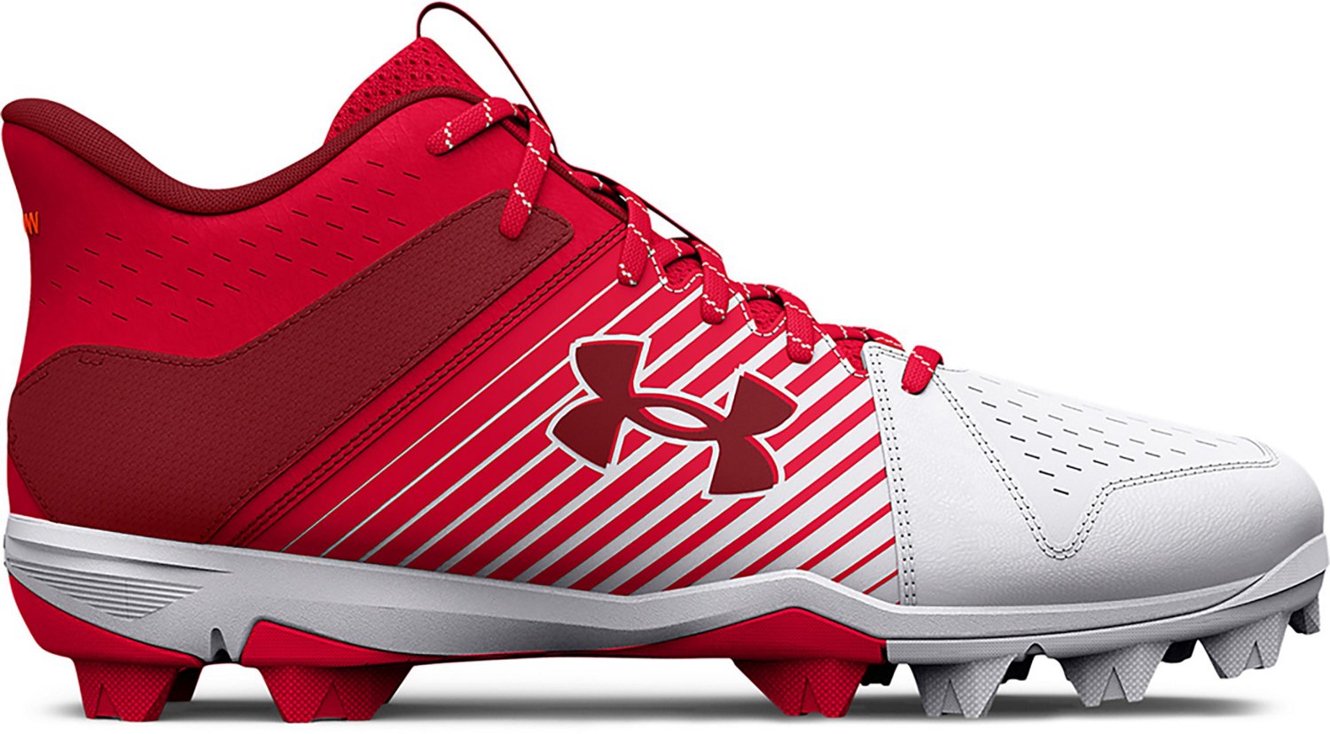 Head to the diamond in the Under Armour Adults' Leadoff Mid Rubber Molded Baseball Cleats. These baseball cleats have synthetic uppers for lightweight durability and full-length EVA midsoles for cushioning. The rubber-molded cleats provide optimal traction on all field surfaces.