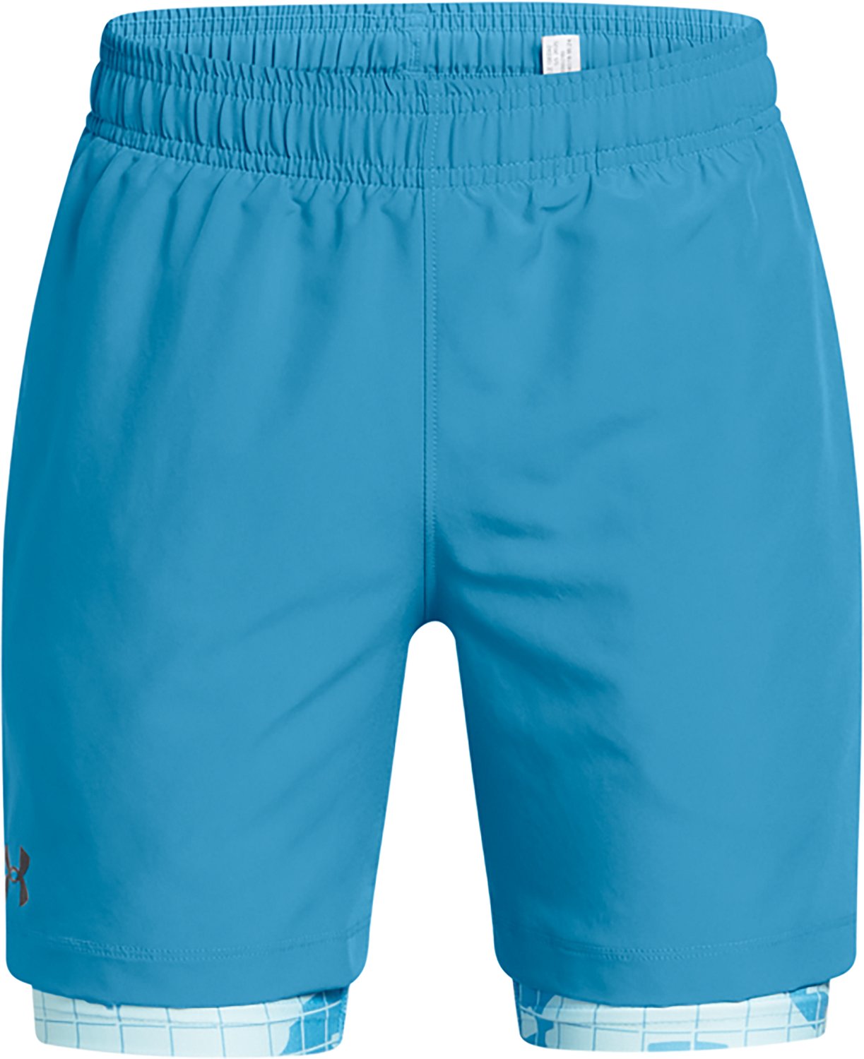 Work up a sweat with the Under Armour Boys' 2-in-1 Shorts 5 in. The polyester material provides a comfortable feel, while the moisture wicking technology helps keep you cool and dry. The 4-way stretch technology promotes mobility, and the elastic waistband and drawstring combo offers a custom fit.