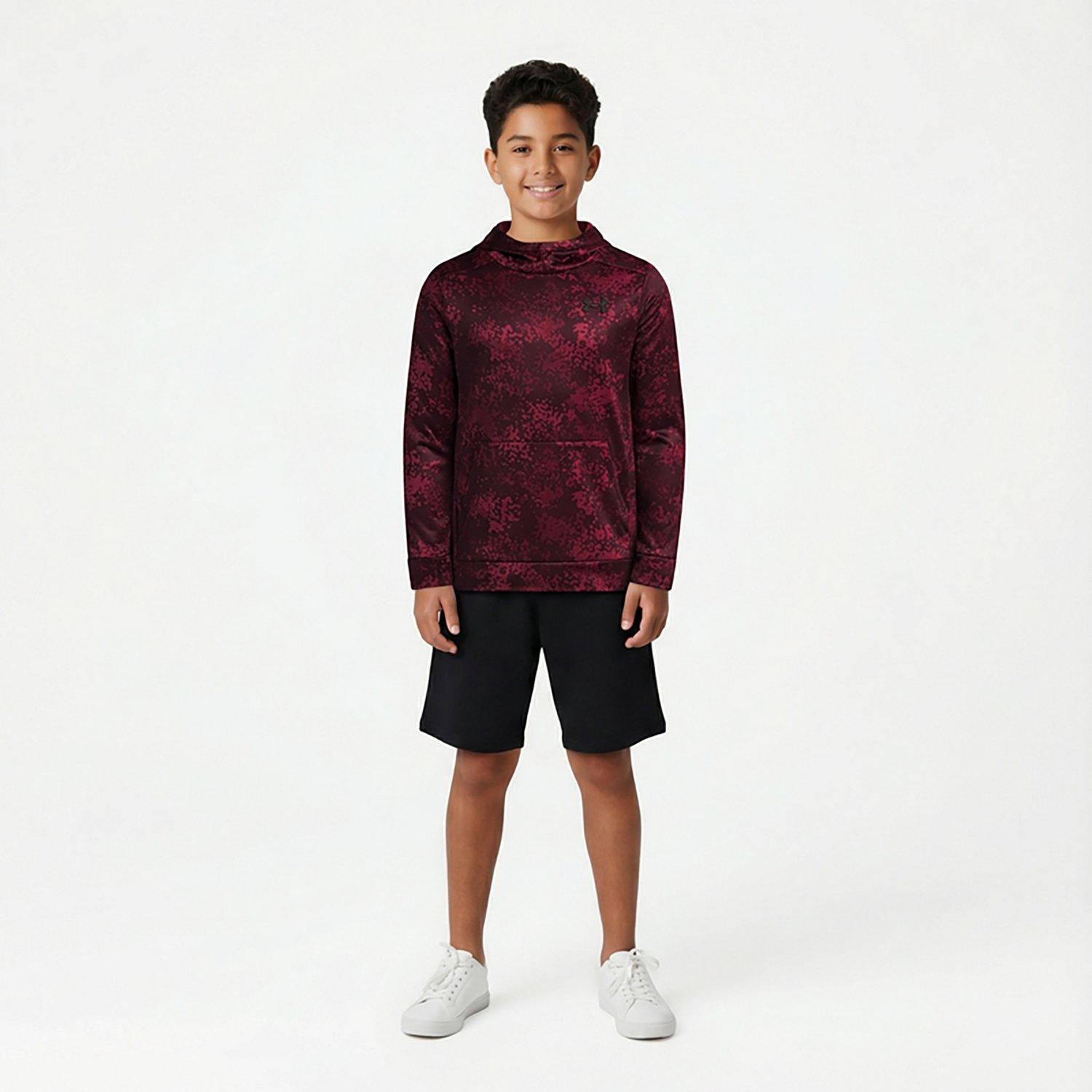 Wear the Under Armour Boys' AF Printed Hoodie to keep warm and comfortable on cool days. Made with 100% polyester material for durability and comfort, this sweatshirt comes with an attached hood and a front kangaroo pocket for enhanced coverage and warmth.