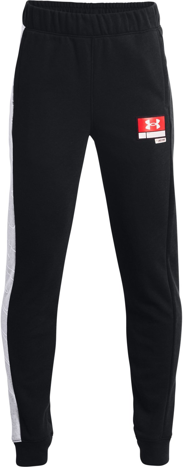 Stay cozy in the Under Armour Boys' Baseline Fleece Pants. Made from a blend of cotton and polyester, the pants feature a brushed interior for extra warmth. The adjustable drawstring and elastic waistband ensure a comfortable fit.
