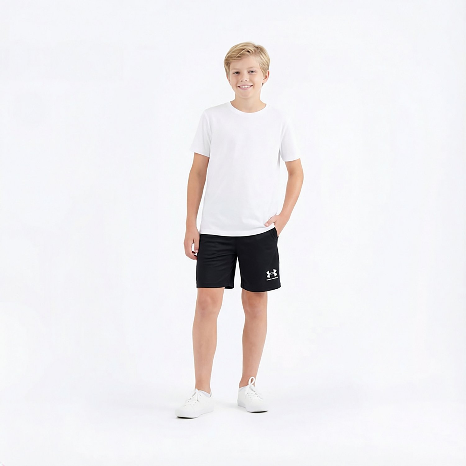 Take on your workout wearing the Under Armour Boys' Challenger Core Shorts. The moisture-wicking technology keeps you dry and cool, and the encased elastic waistband with an internal drawstring lets you loosen or tighten the fit. A polyester construction withstands wear and tear, and the brand logo highlights your sporty side.