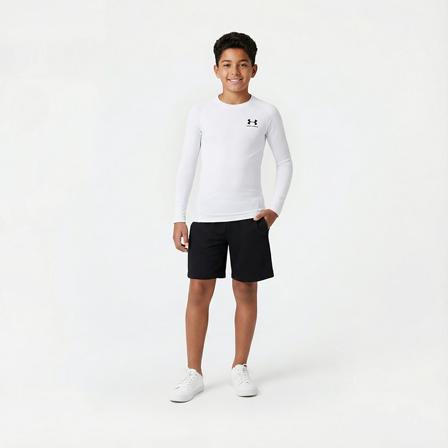 Reach your top workout potential in the Under Armour Boys' ColdGear Armour Long Sleeve T-Shirt. The polyester-elastane blend stretches in 4 directions for mobility, and the brushed inner layer traps heat. The smooth outer layer wicks sweat, dries quickly and fights odors, while the mesh back and underarm panels improve ventilation.