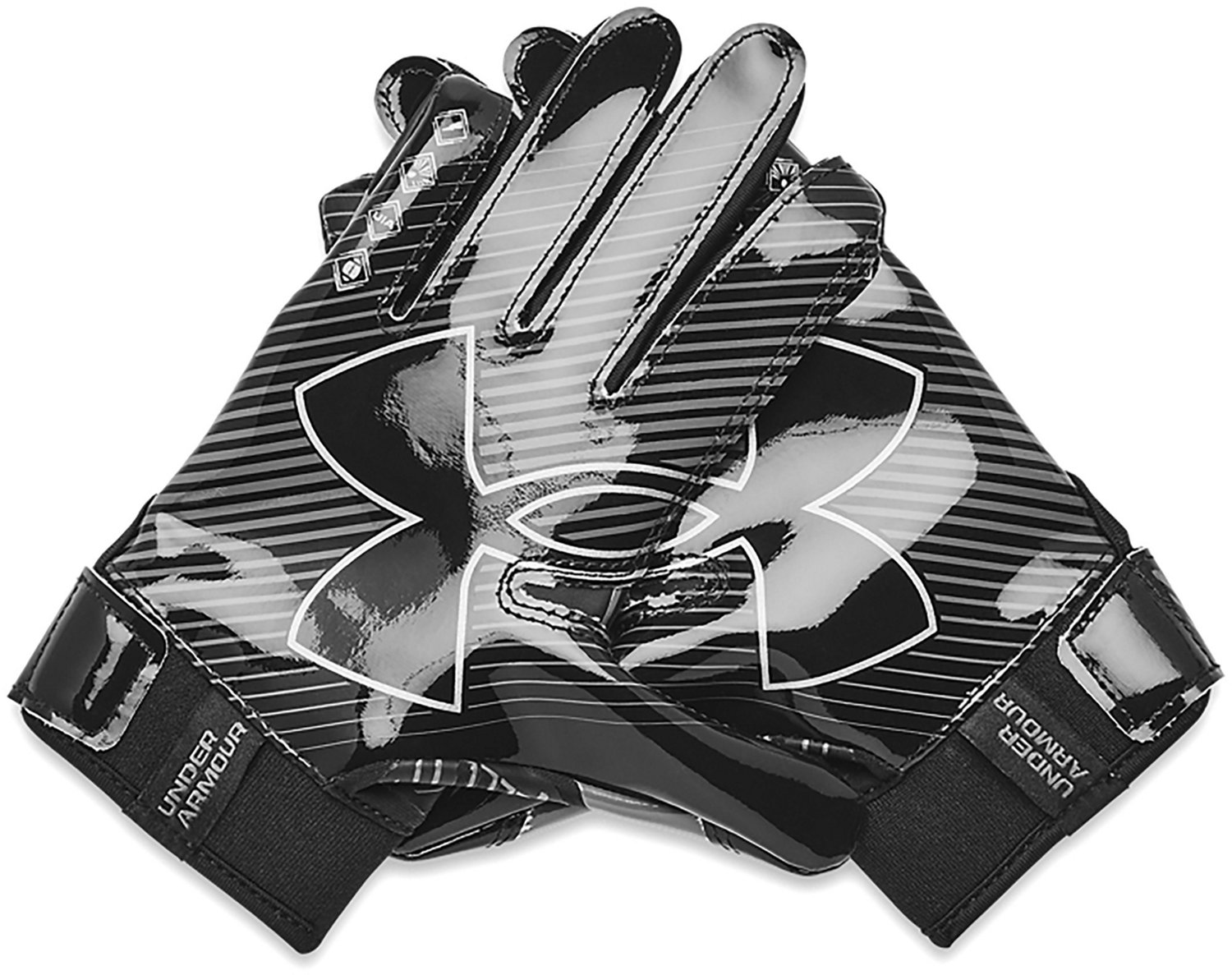 Haul in every pass thrown your way with the Under Armour Boys' F9 Pee Wee Nitro Football Gloves. The silicone and nylon material provides a comfortable feel, while the Textured TurfGear technology offers breathability. The silicone print overlays provide support, structure and mobility, and the UA GlueGrip technology delivers consistent tack.