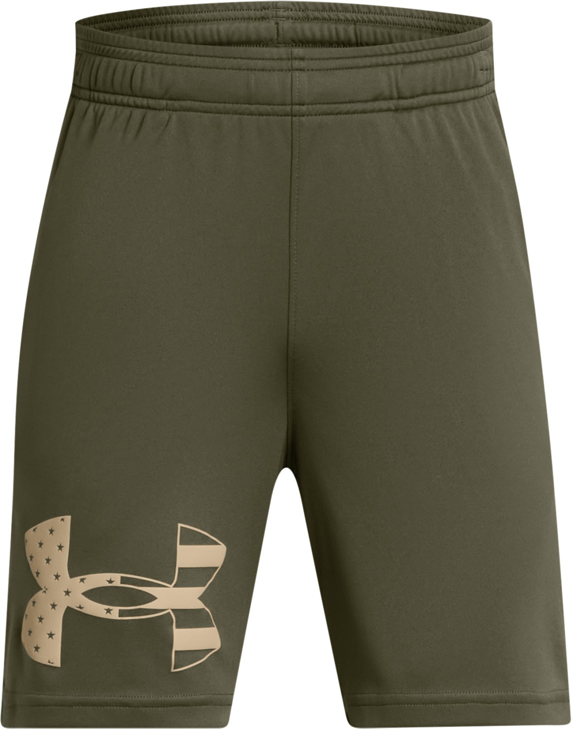 Take on the day in the Under Armour Boys' Freedom Tech Shorts 6 in. They are made of 100% polyester. The UA Tech™ fabric is quick-drying, ultra-soft, and has a more natural feel, and their material wicks sweat and dries fast. The encased elastic waistband has an internal drawcord.