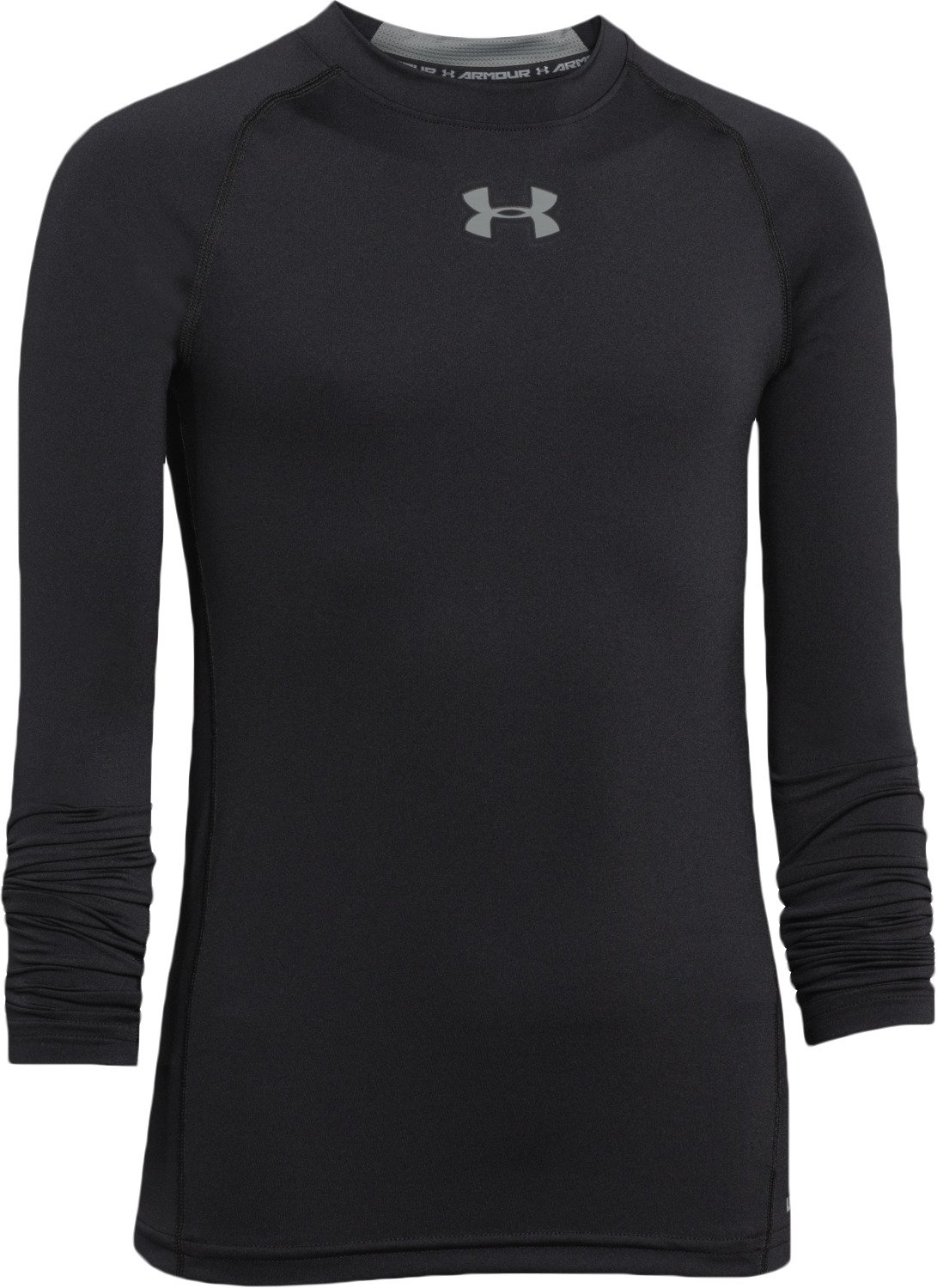 Great to wear as a base layer, the Under Armour™ Boys' HeatGear® Armour Fitted Long Sleeve T-shirt is made of stretchy polyester and elastane with HeatGear® technology for cool comfort. The Moisture Transport System wicks sweat to help keep him dry, and the mesh back neck and underarm panels deliver strategic ventilation. UPF 30+ sun protection.