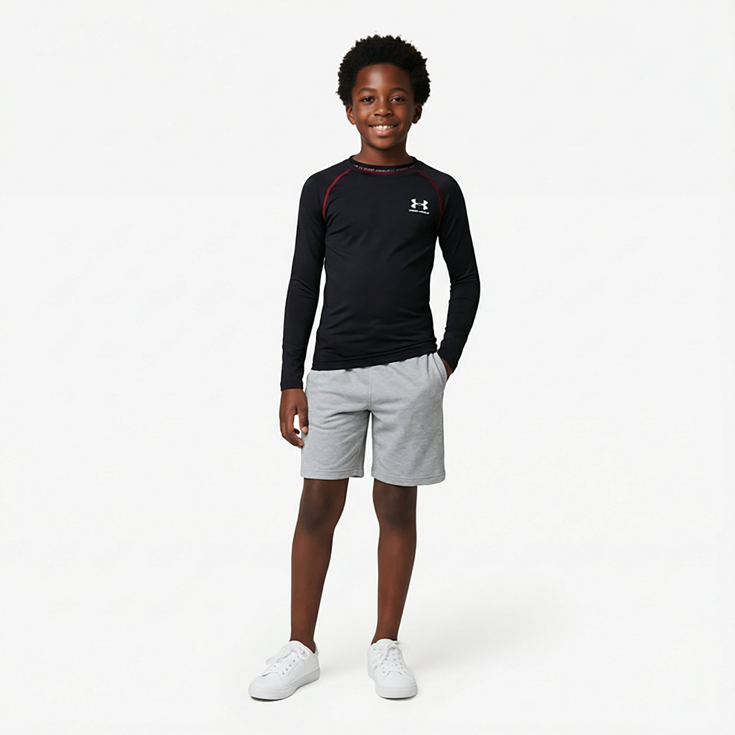 Gear up for the long haul with the Under Armour Boys' HeatGear Long-Sleeve T-shirt. Crafted with polyester and elastane material, this T-shirt provides a comfortable feel, while the moisture-wicking technology helps keep you cool and dry. The 4-way stretch technology promotes mobility, and the anti-odor technology ensures a fresh feel.