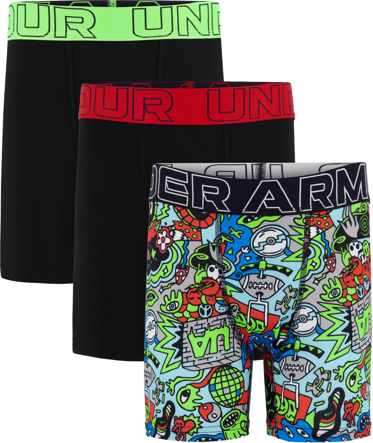 Take control of the day with the Under Armour Boys' Performance AOP Boxer Briefs 3-Pack. The polyester and spandex material provides a comfortable feel, while the moisture wicking technology helps keep you cool and dry. The 4-way stretch technology promotes mobility, and the Biocide-Free Odor Control technology ensures a fresh feel.