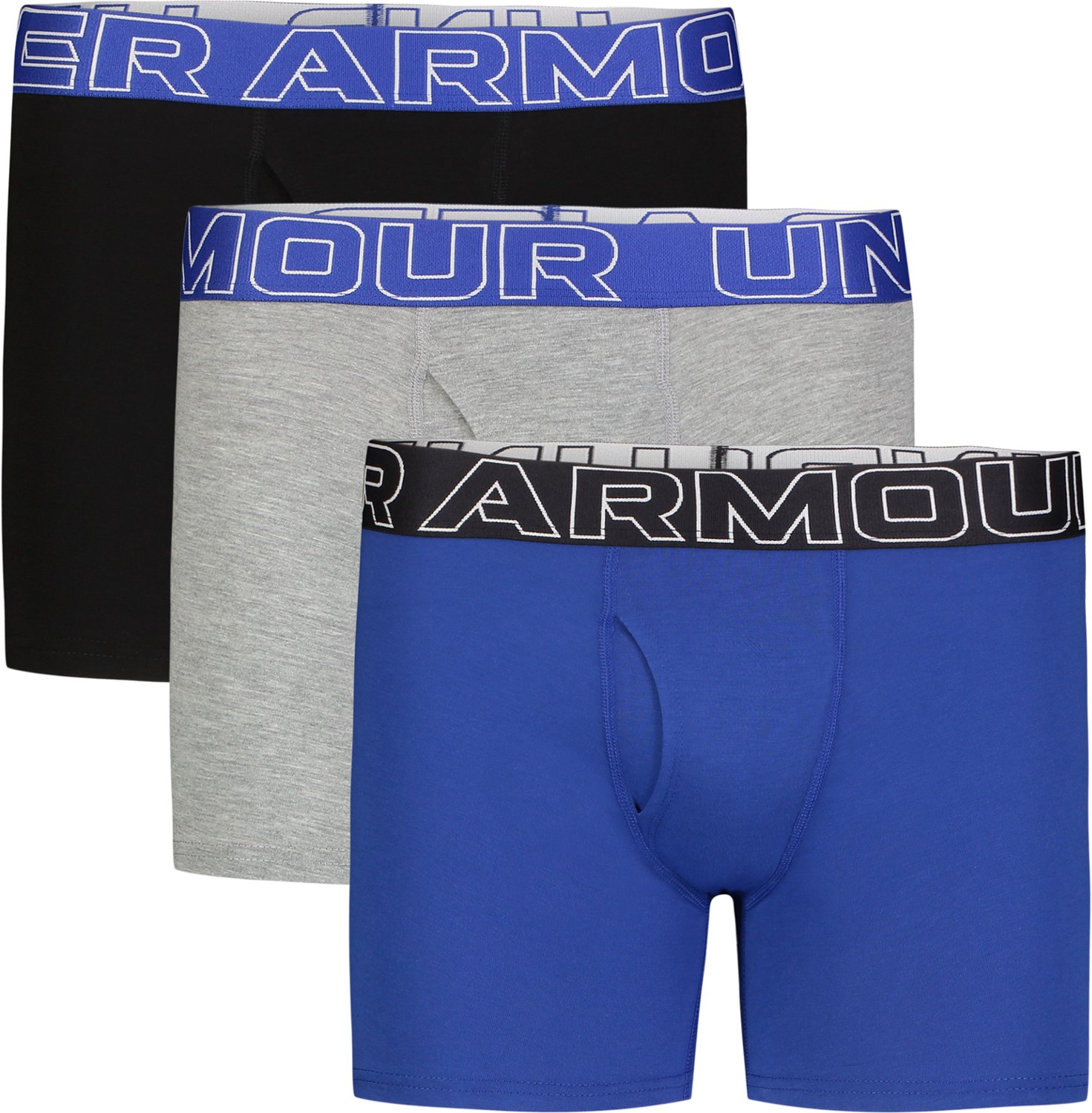 Designed for non-stop action, the Under Armour Boys' Performance Cotton Boxer Set delivers all-day comfort. Whether he's at practice, school, or just hanging out, these boxers keep up with him thanks to their soft feel and stretchy fit. With three in the pack, he’s set for whatever the week brings.