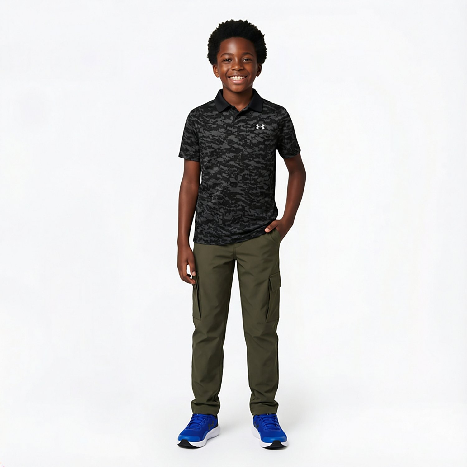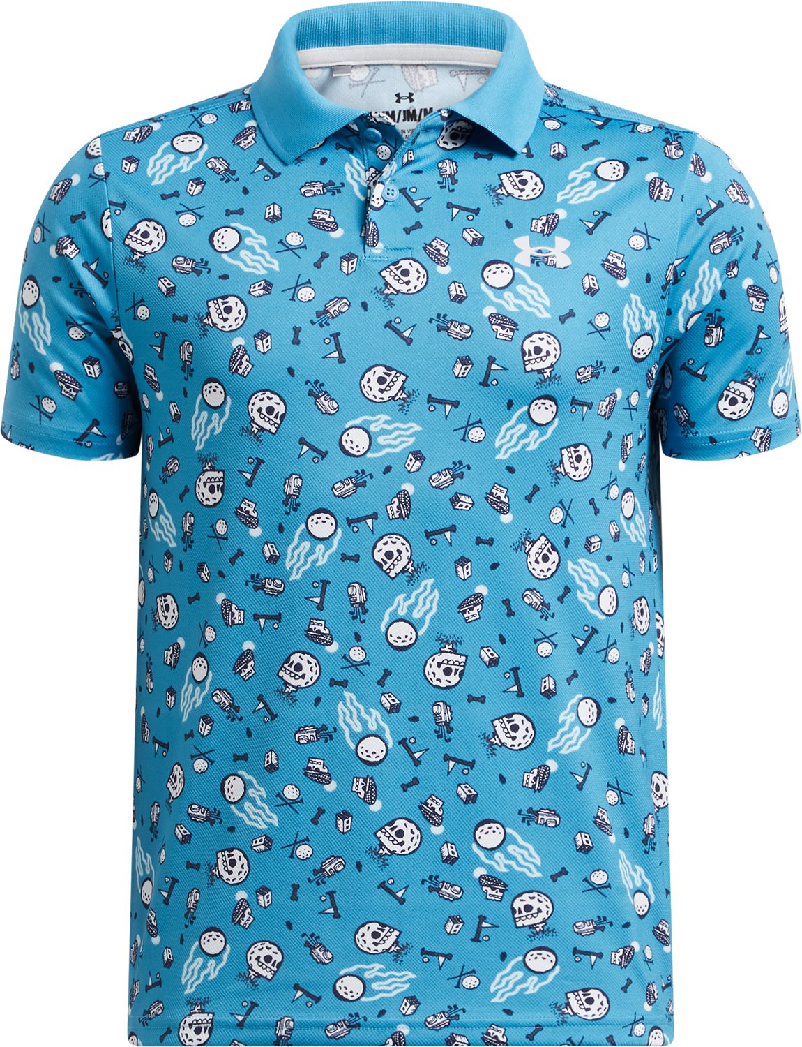 He'll stay comfortable all day in the Under Armour Boys' Performance Printed Polo Shirt. The 94% polyester and 6% elastane anti-pick, anti-pill fabric has a textured snag-free finish for comfortable wear. The anti-odor technology keeps him smelling fresh, while the moisture-wicking technology helps him stay cool and dry.