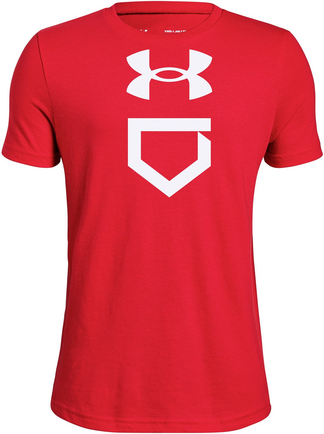 Send them to school or play in comfort with the Under Armour Boys' Plate Short Sleeve T-shirt. The lightweight cotton-polyester blend dries quickly and feels soft on his skin, while a baseball plate graphic shows his sport love.