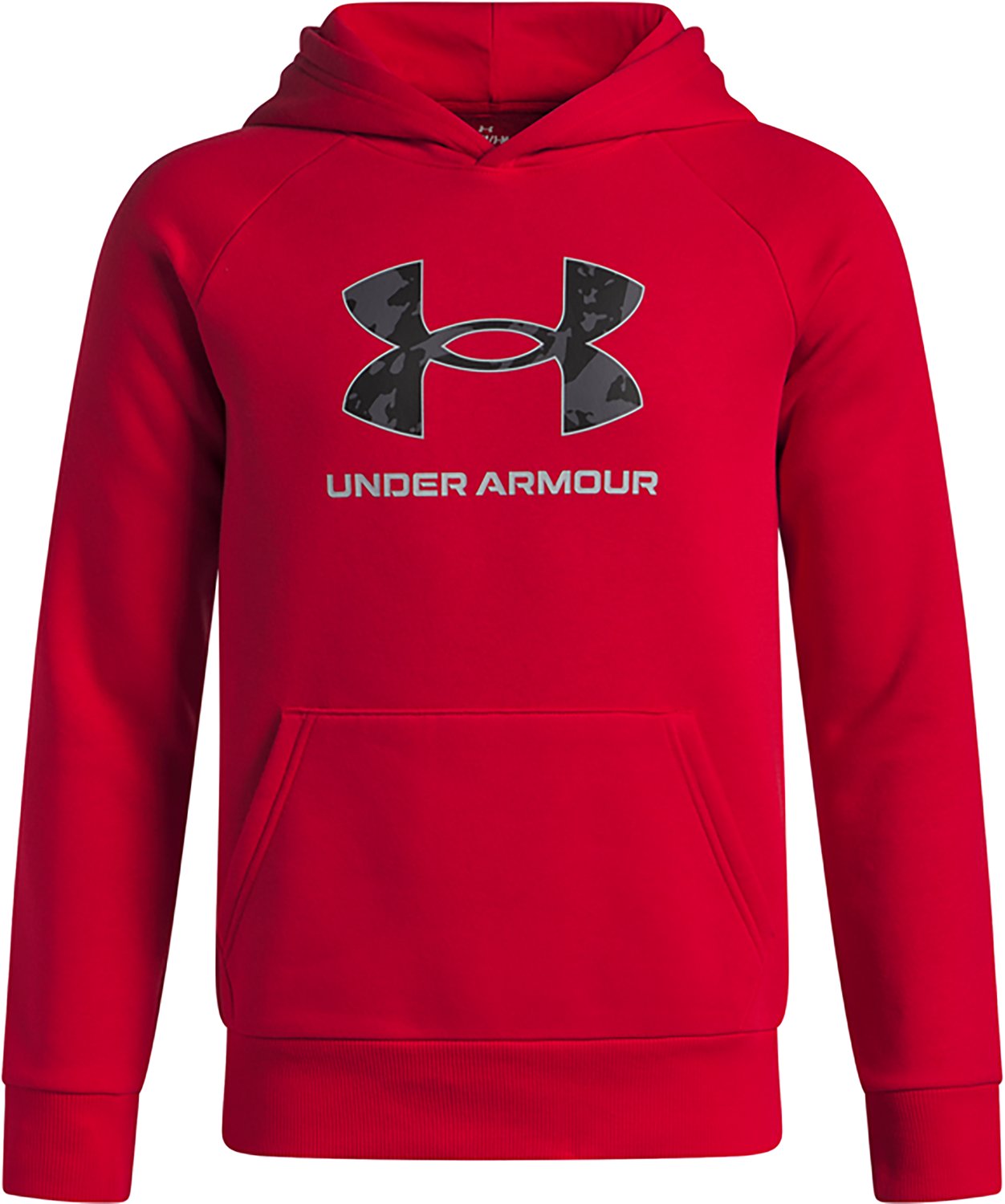 Keep him warm and stylish in the Under Armour Boys' Rival Fleece Big Logo Printed Fleece Hoodie. Crafted with ultra-soft cotton-blend fleece, this hoodie offers exceptional comfort and warmth. The bold logo print adds a touch of cool, while the kangaroo pocket and ribbed cuffs provide practical functionality