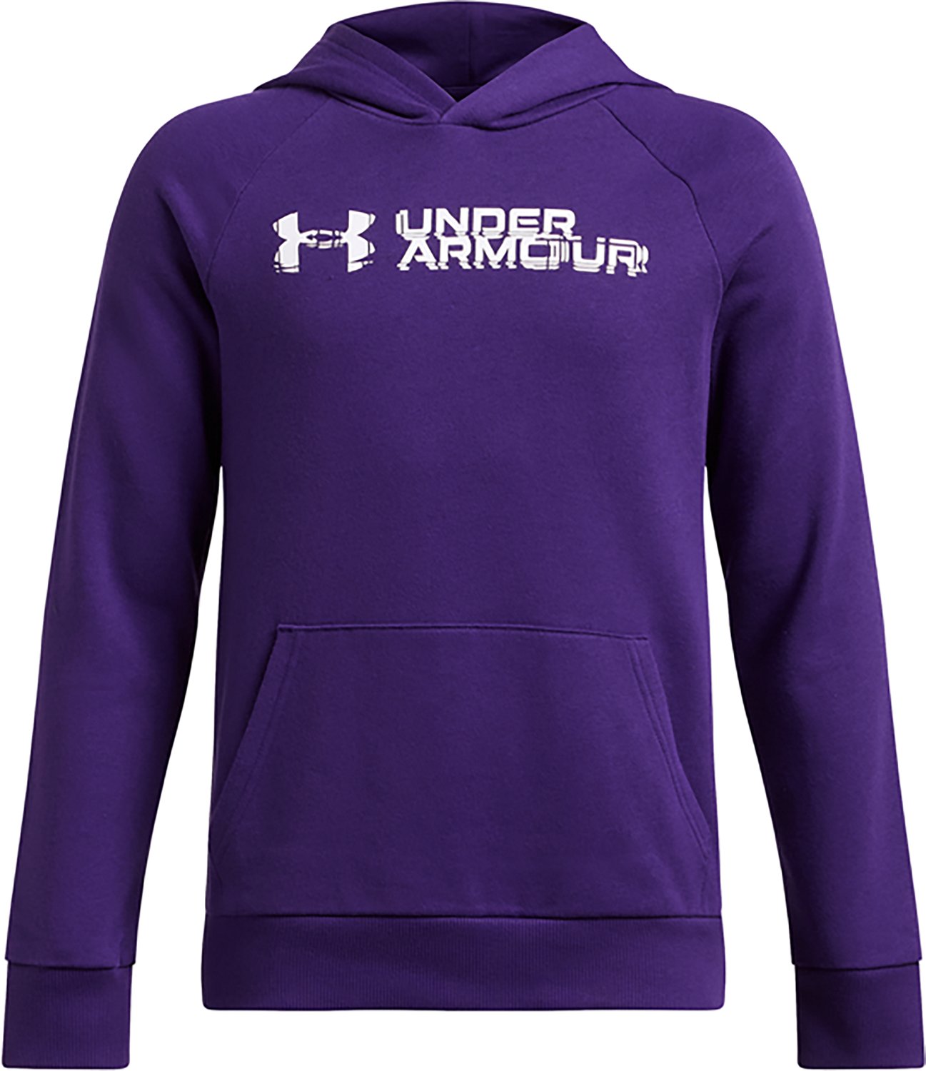 Stay cozy in the Under Armour Boys' Rival Fleece Wordmark Hoodie. Featuring a classic wordmark design and soft fleece, this hoodie is perfect for layering or standalone wear. The kangaroo pocket offers added convenience.