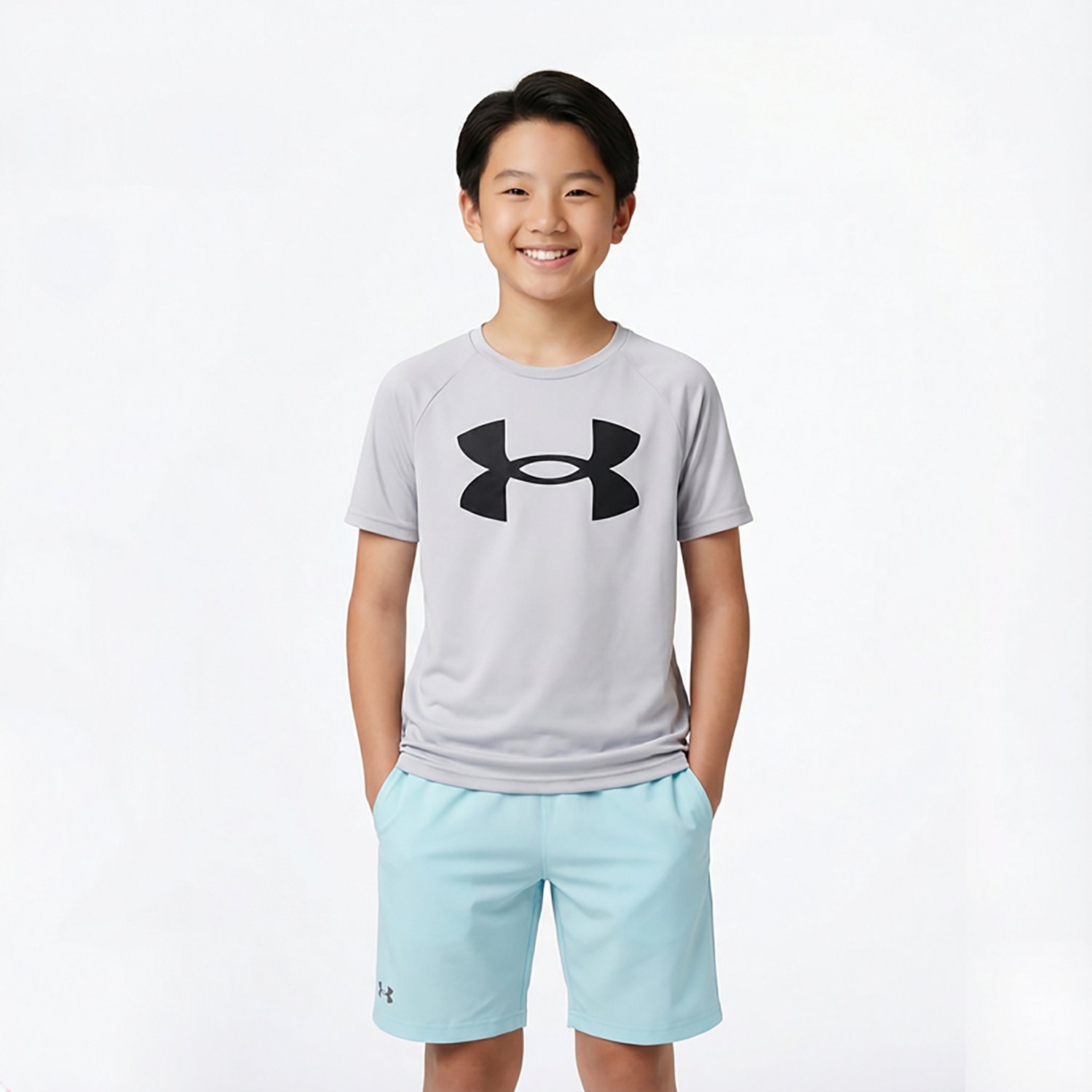 Push your limits in the Under Armour Boys' Tech Logo T-Shirt. The UA Techâ„¢ fabric offers a soft, natural feel, while the aterial wicks away sweat and is quick drying with built-in odor resistance for comfortable wear. The raglan sleeve design and the printed logo graphic combine for a stylish, athletic look.