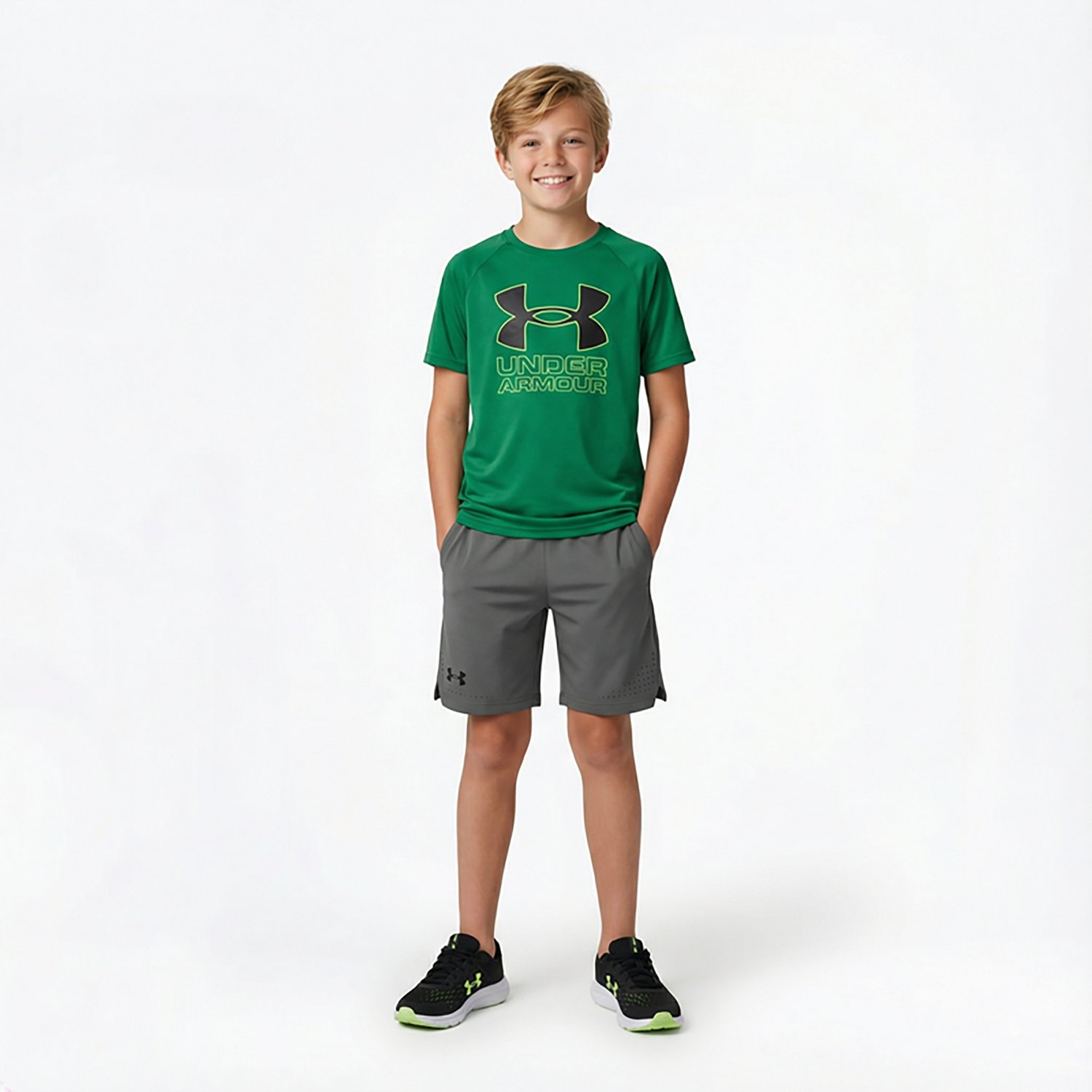 Stay cool and look cool in the Under Armour Boys' Vanish Shorts 7 in. These polyester shorts feel lightweight against the skin and feature 4-way stretch technology so you can move freely. The elastic waistband stays in place, while the mesh panels help you stay cool.