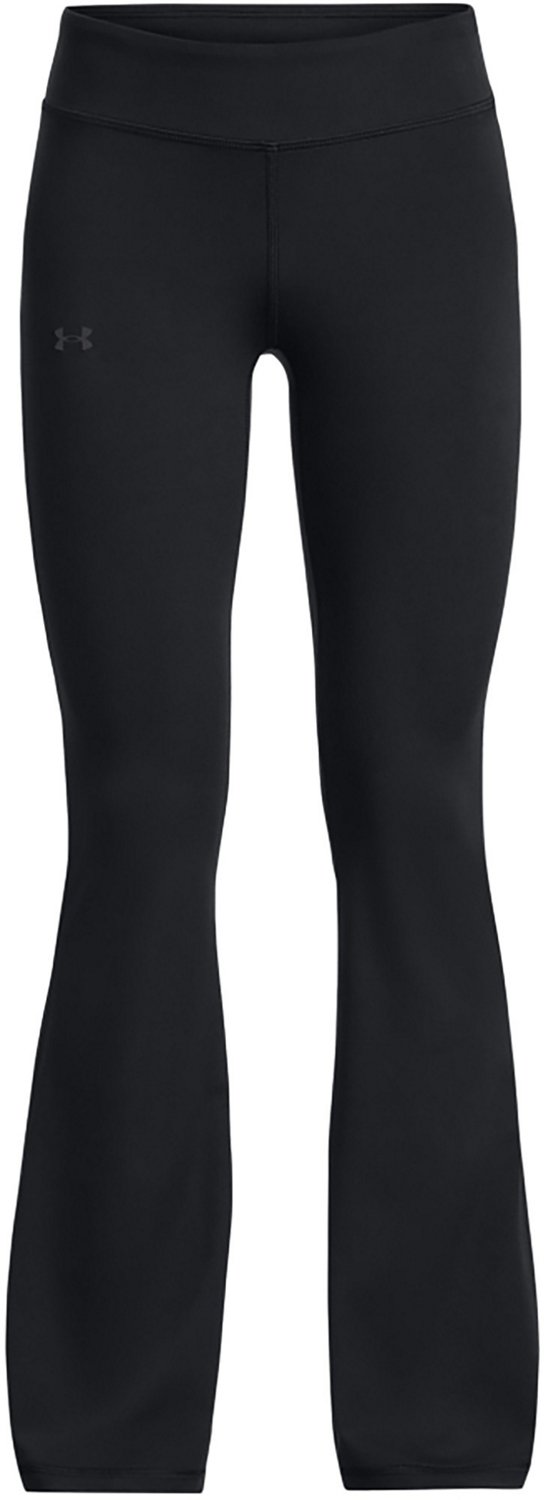 Show off your style while staying comfortable in the Under Armour Girls' Motion Solid Ankle Crop Legging. This lightweight polyester and elastane blend is soft and breathable and is made of 4-way stretch material, allowing you to move freely in any direction. The moisture-wicking fabric is designed to keep you cool and comfortable, and the slim fit with a flare kick adds a touch of style.