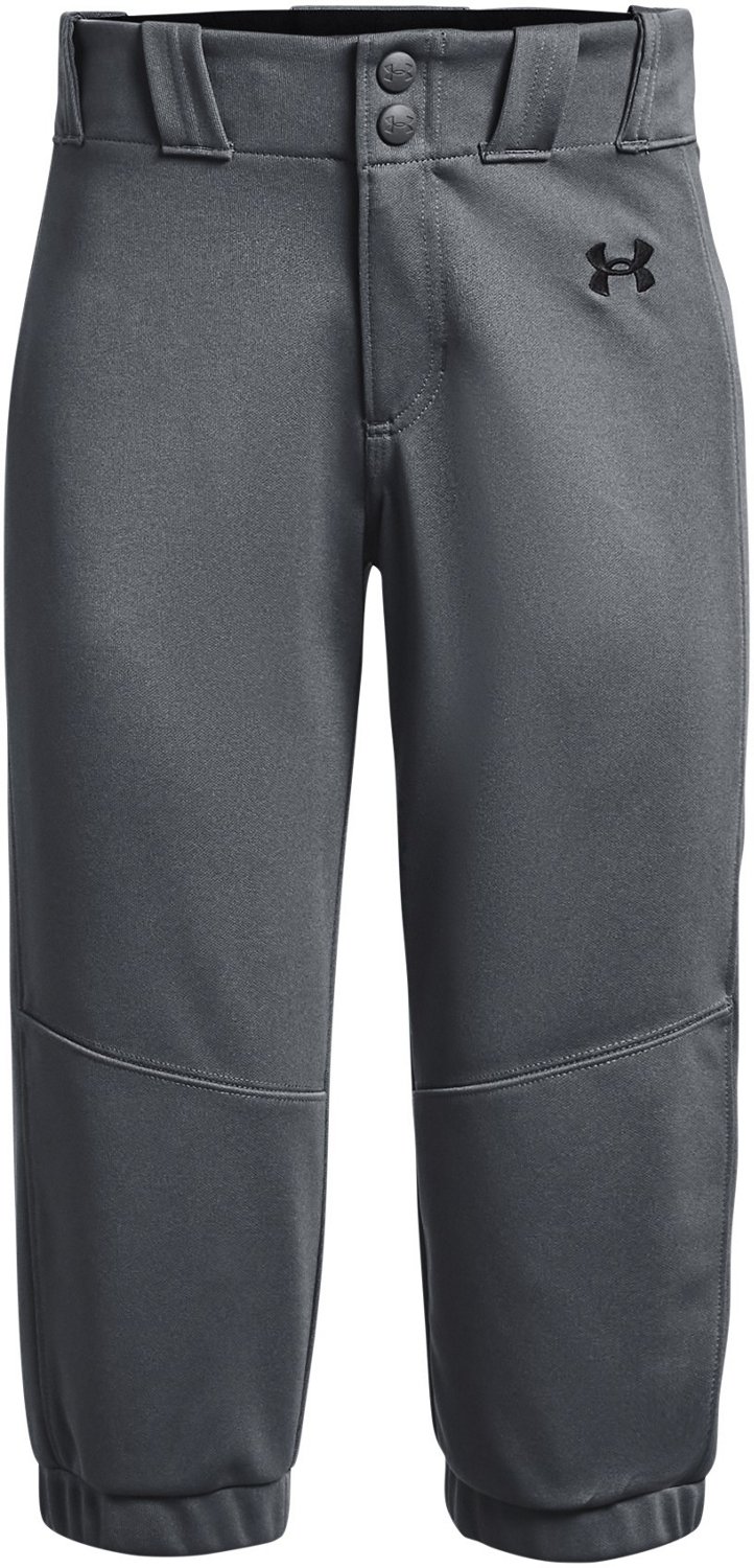 The Under Armour Girls’ Utility Softball Pants are made for hot weather games. The moisture-wicking technology helps you stay cool and dry, and the elastic waistband with belt loops allows for a secure fit. The 100% polyester lightweight fabric delivers durability when sliding into home base.