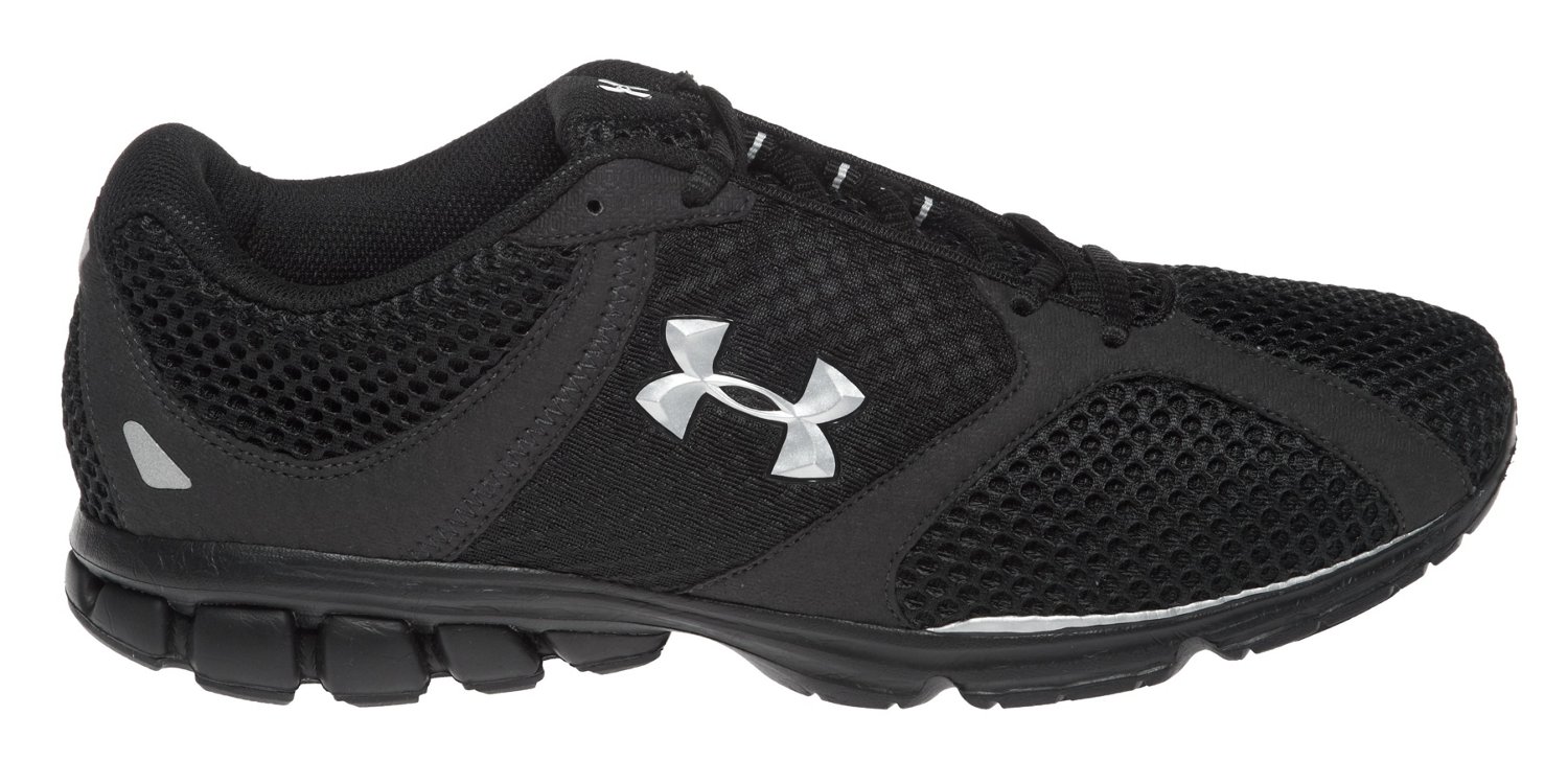 Enjoy a responsive, cushioned ride in the Under Armour™ Men's Assert Running Shoes. The low-profile midsoles are designed with ArmourBound® and ArmourLastic® technologies to offer full-length cushioning and shock absorption, while the ventilated internal Footsleeves® help eliminate sliding and bulk for a comfortable fit. The outsoles feature carbon rubber at the impact and abrasion zones and durable foam at the areas of less tread to provide traction and light weight. Synthetic and mesh uppers.